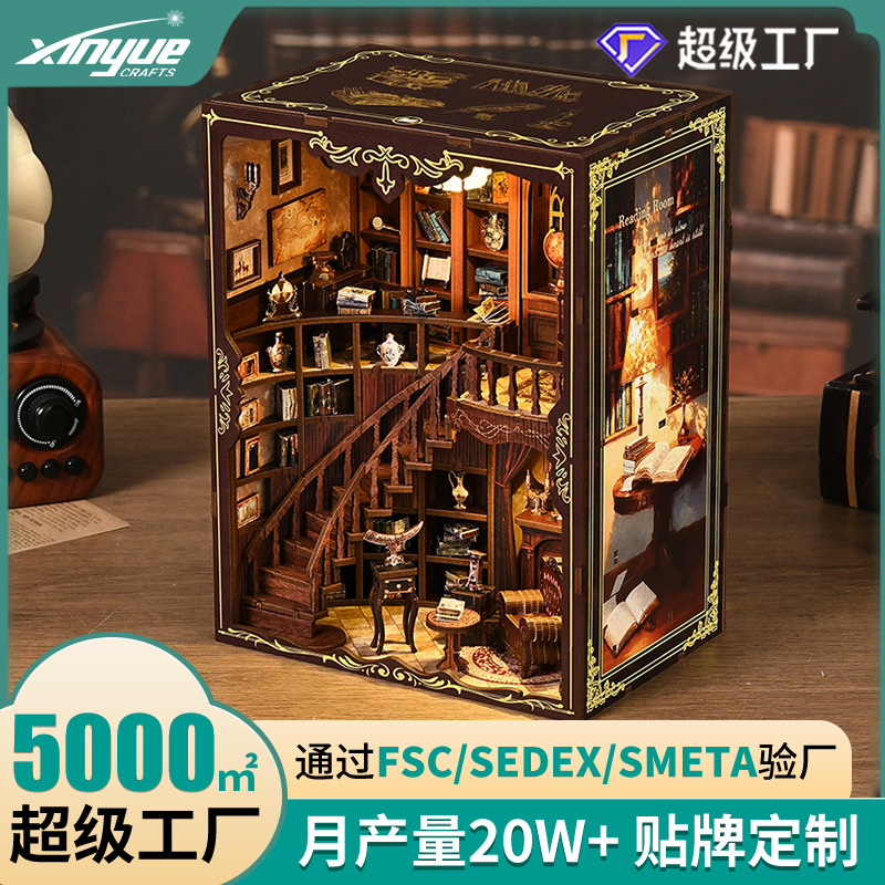 新しいDIY小屋「夢の書斎」ブックスタンド木製手作り組み立てモデルハウス越境クリエイティブギフトDIYブックスタンド