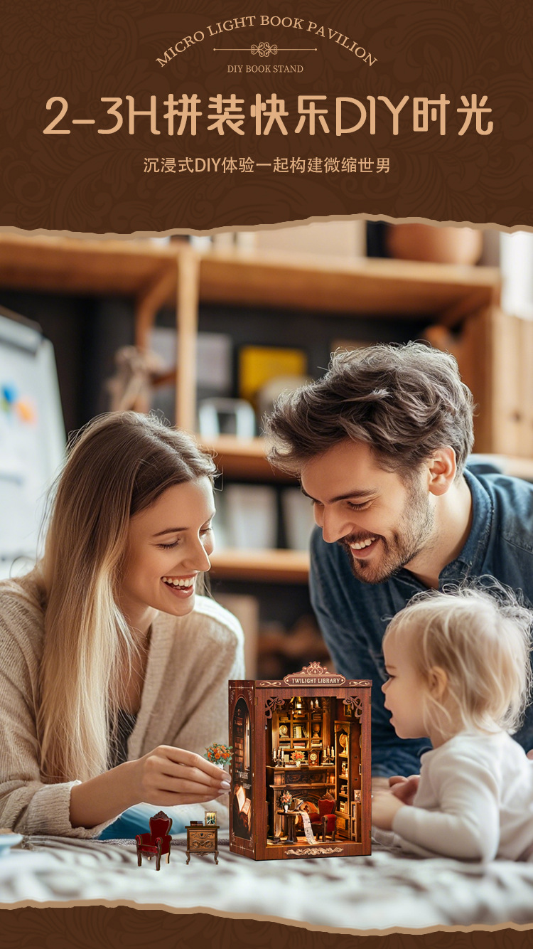 跨境diy小屋微光书阁DIY微缩场景拼装模型屋3d立体创意拼图书立