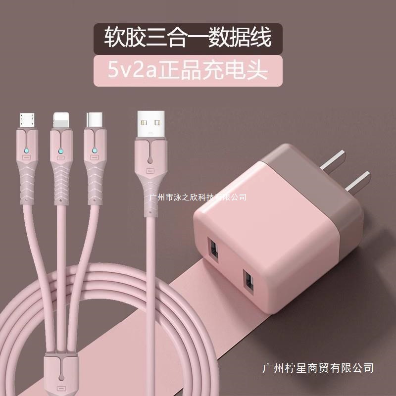 3 ヘッド充電器ケーブル急速充電セット 3-in-1 携帯電話マルチポートフラッシュ充電充電ヘッドデータケーブル 2-in-1 適用