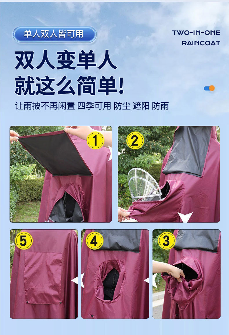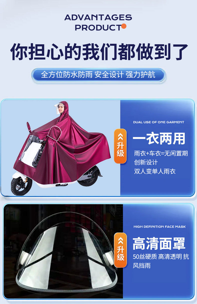 颜色 双人红色【牛津布+高清护脸】,双人蓝色【牛津布+高清护脸】,双人紫色【牛津布+高清护脸】,单人枣红【牛津布+高清护脸】,单人蓝色【牛津布+高清护脸】,单人紫色【牛津布+高清护脸】,一次性雨衣