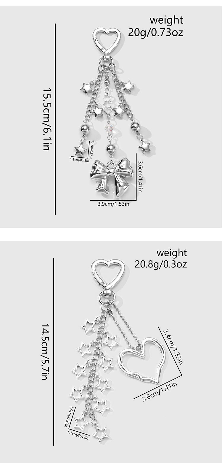颜色 银色蝴蝶结钥匙扣1个,银色爱心钥匙扣1个