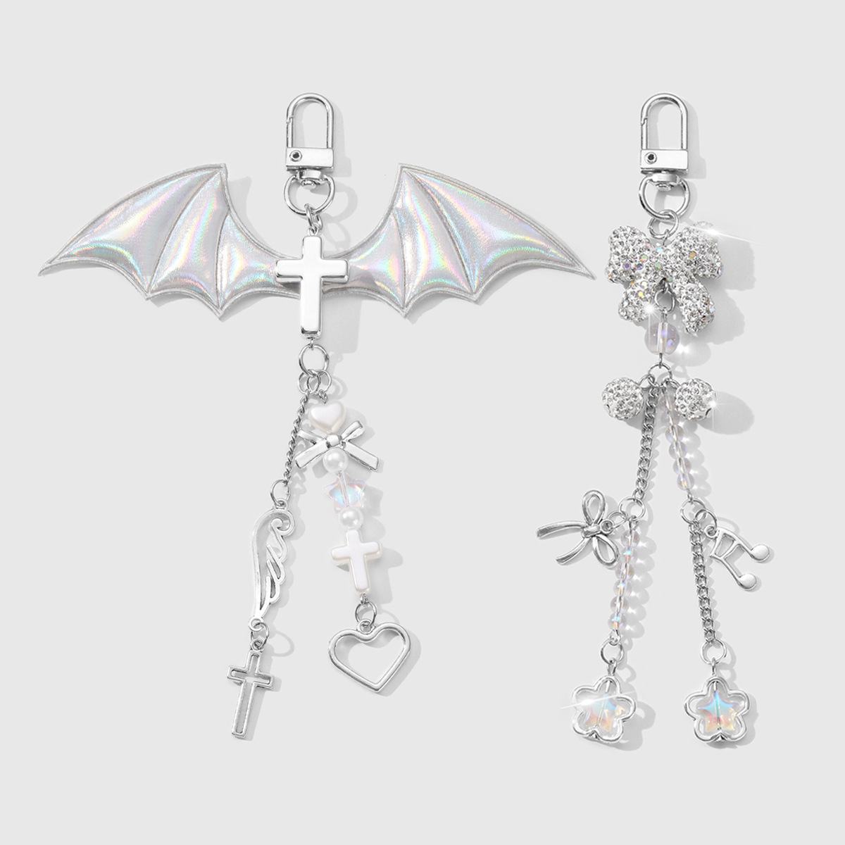 y2k潮流时尚个性十字架翅膀软陶水钻蝴蝶结音符爱心钥匙扣包挂件