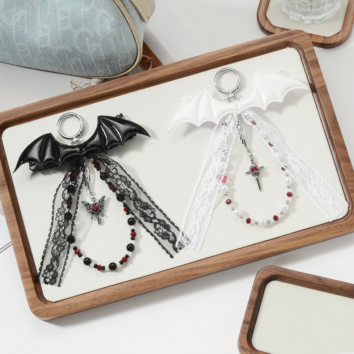 个性时尚暗黑风情侣款CCB十字架皮革蝙蝠蕾丝花边蝴蝶结DIY钥匙扣