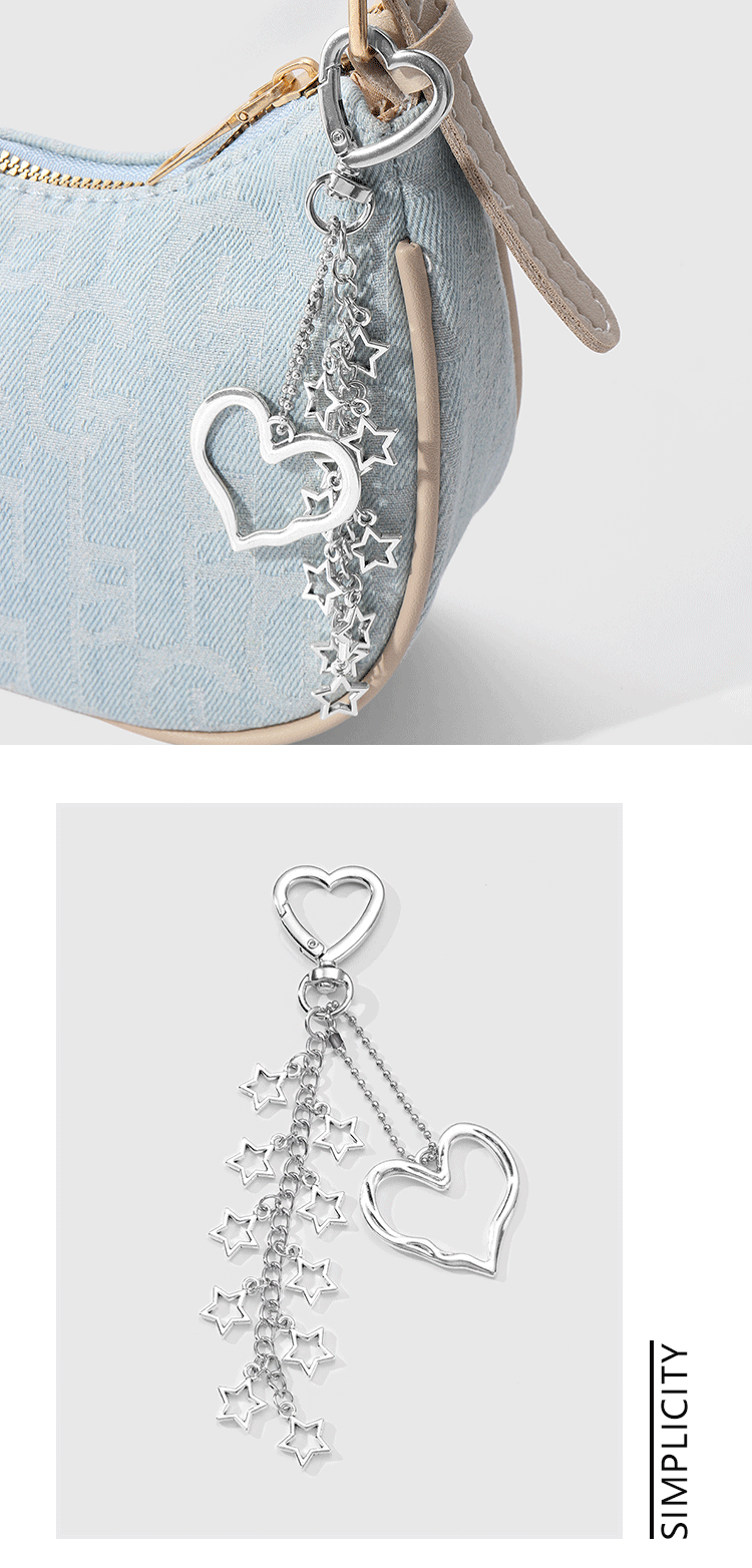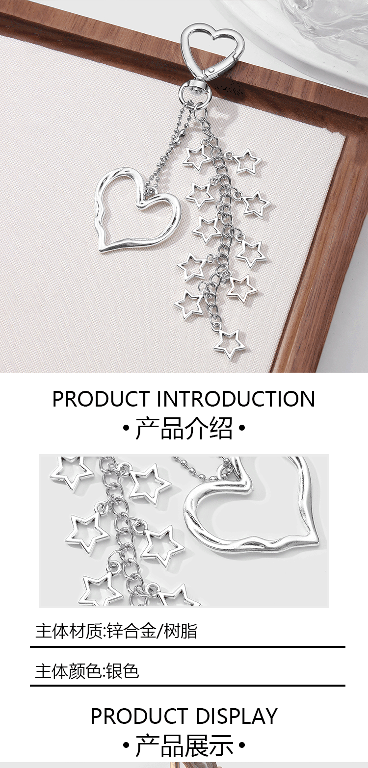 新款y2k创意精致时尚银色CCB爱心星星可打开玻璃镜子DIY钥匙扣