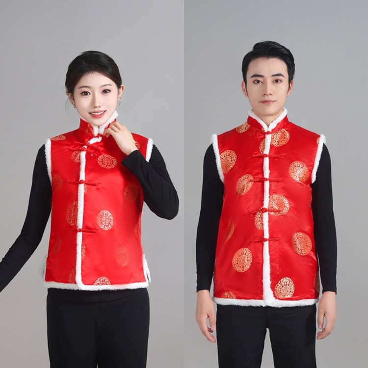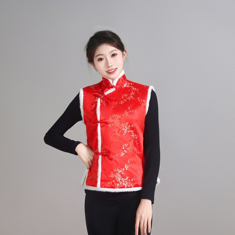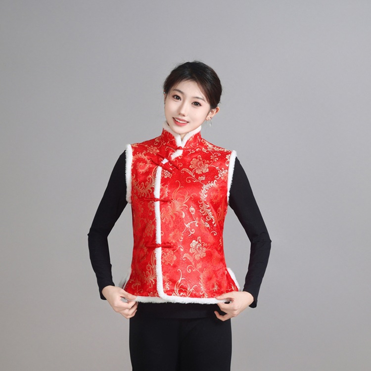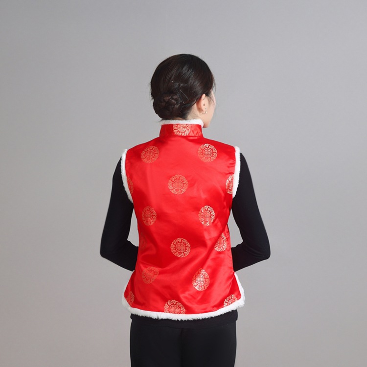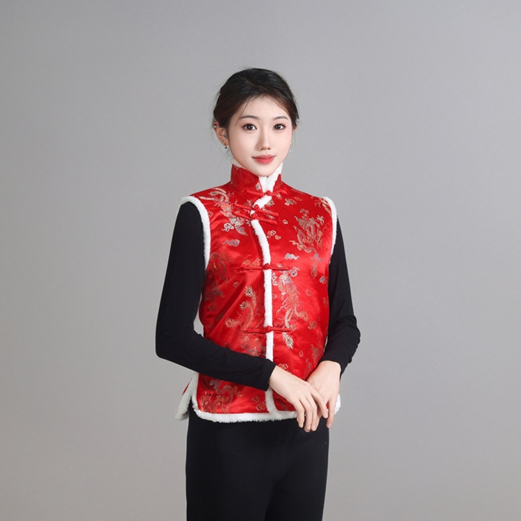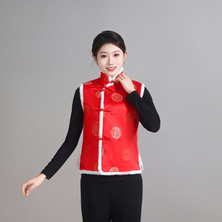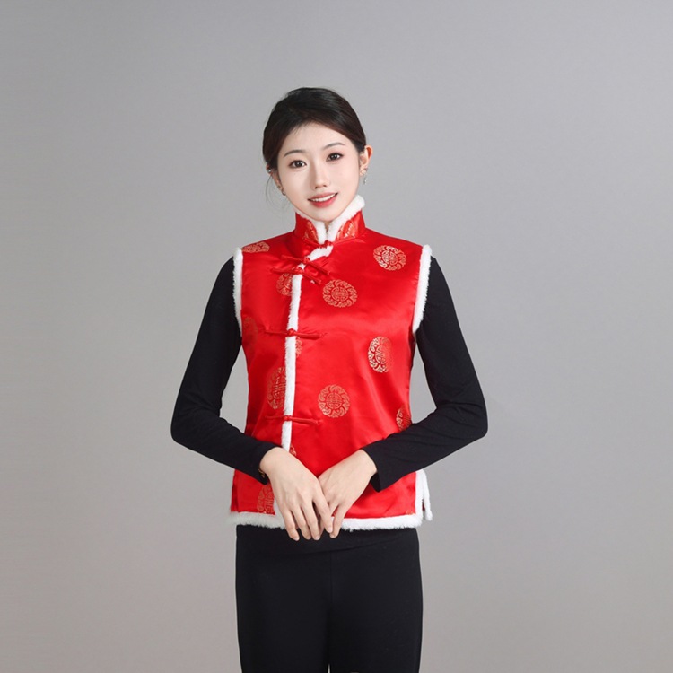 中国風秋冬モデル唐装女性馬甲クリスマス元日スーパーホテル作業服綿ベスト新年公演服