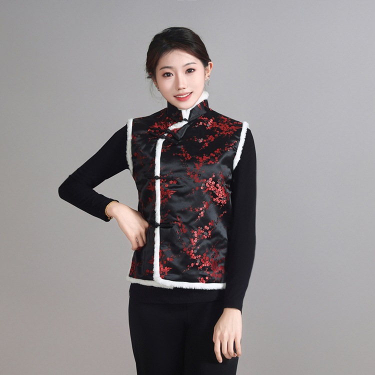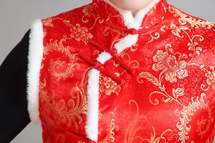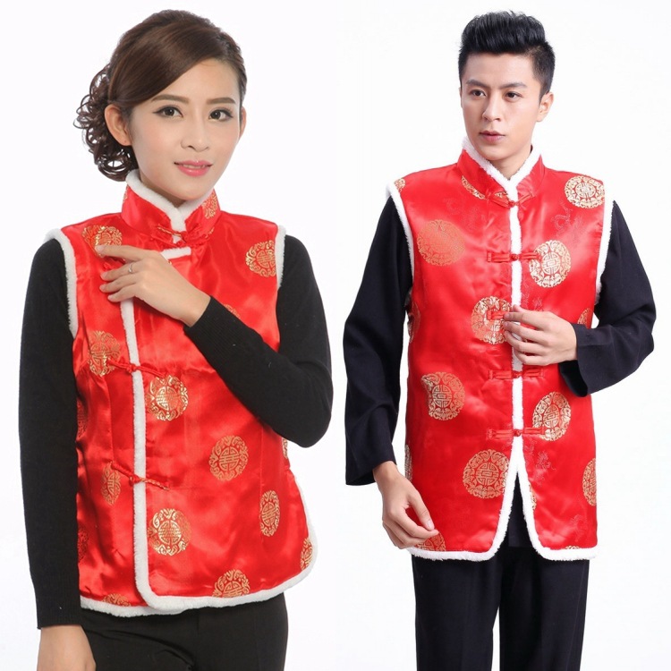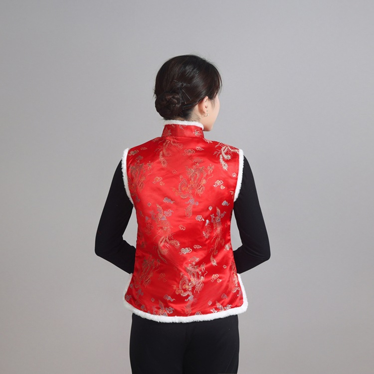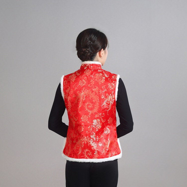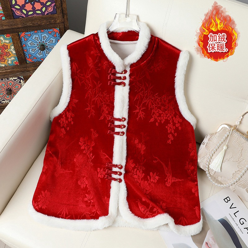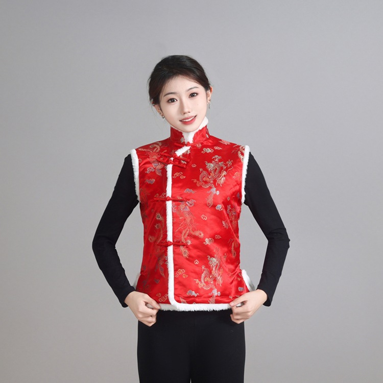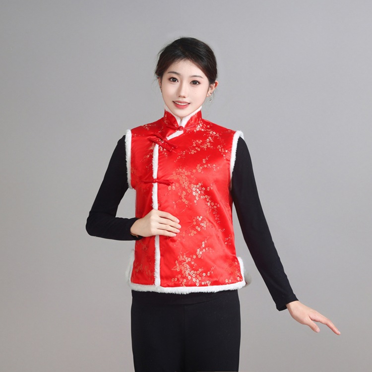 中国風秋冬モデル唐装女性馬甲クリスマス元日スーパーホテル作業服綿ベスト新年公演服