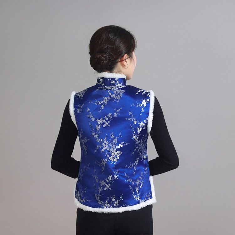 冬用唐装ベスト、女性用中国風綿入りベスト、元旦、新年、ホテル、スーパーマーケットの作業服、年次総会、演出服