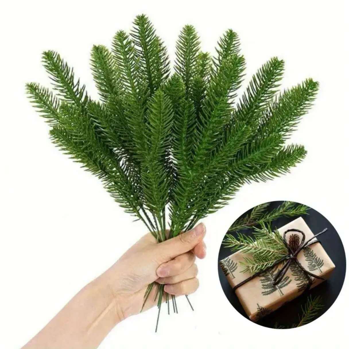 跨境热销仿真松枝单支装饰圣诞绿植摆件室内圣诞树插花配件批发