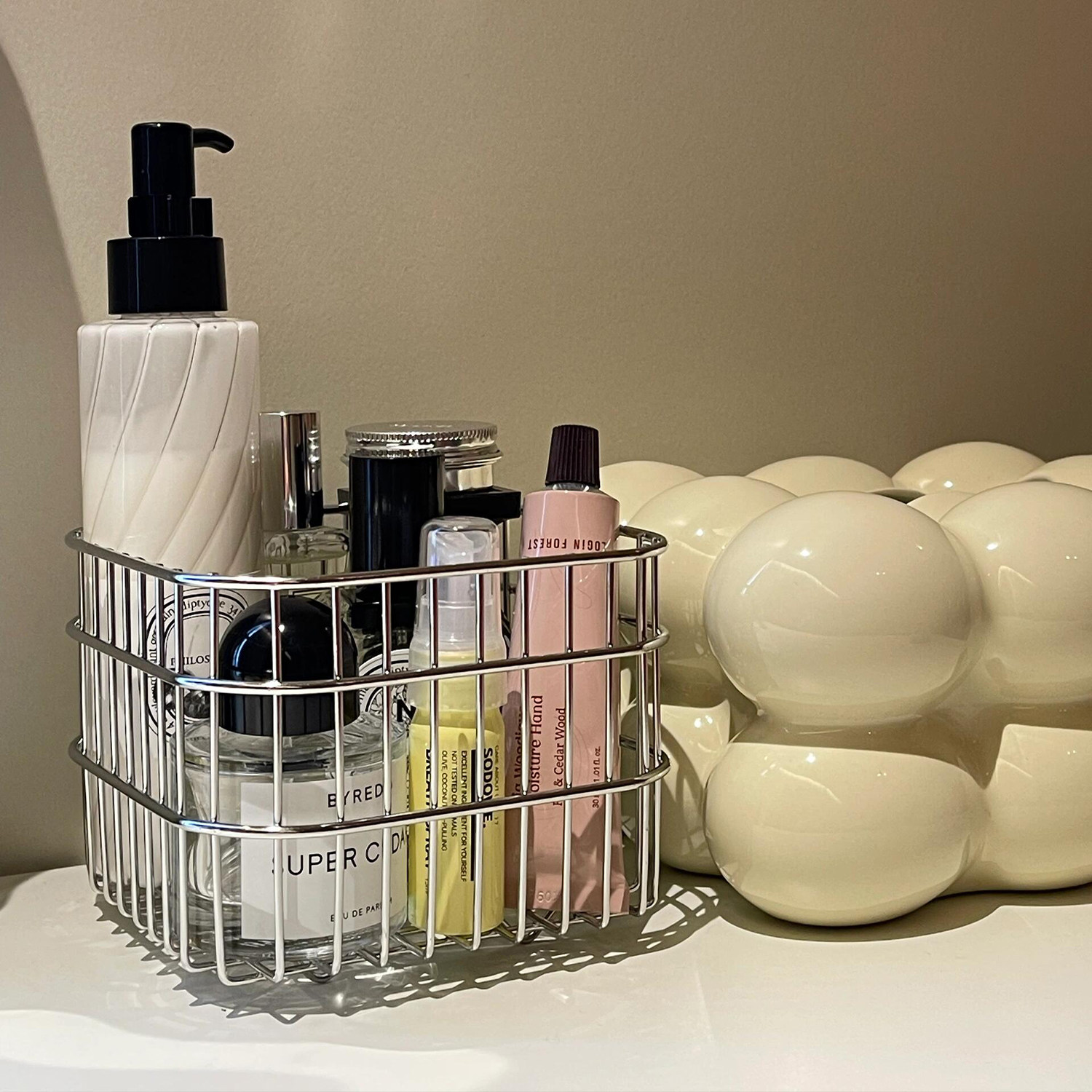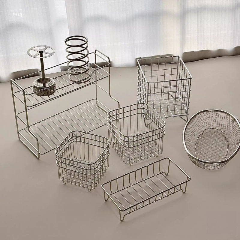 304ステンレス製バスケット果物バスケット水切り収納棚家庭用ins風角型化粧品収納バスケット