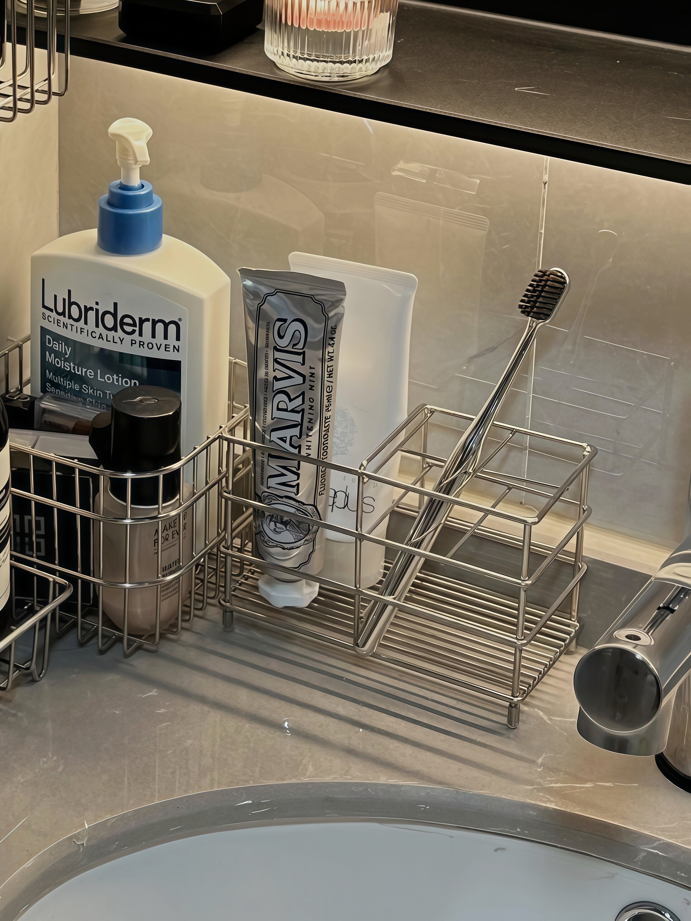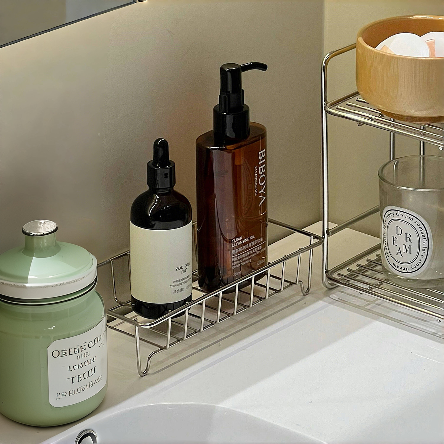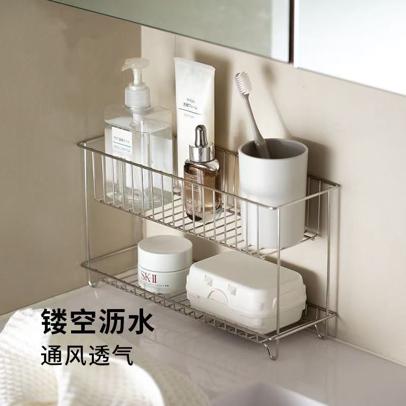 洗漱台收纳架桌面收纳盒不锈钢沥水置物化妆品筐篮卫生间浴室厕所