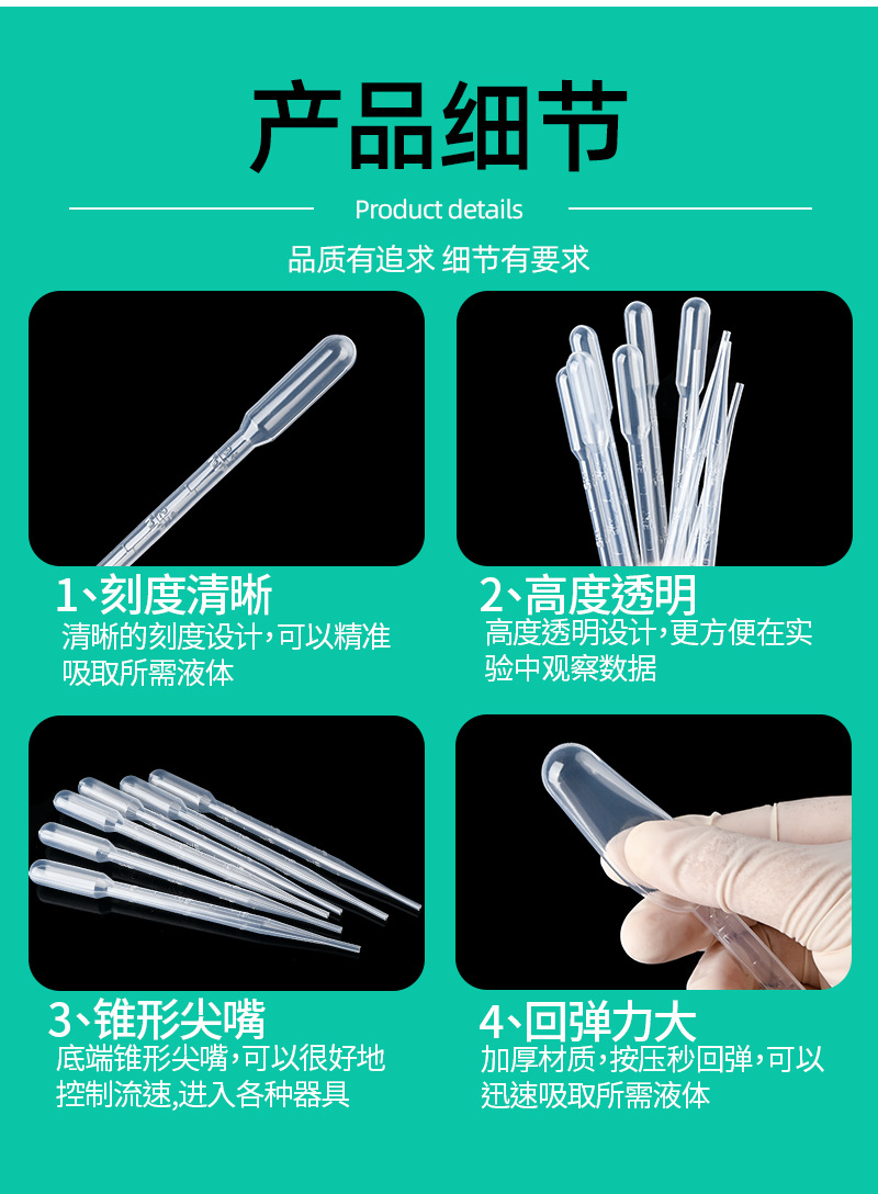 一次性滴管巴氏吸管实验室可用移液吸管带刻度一次性塑料滴管