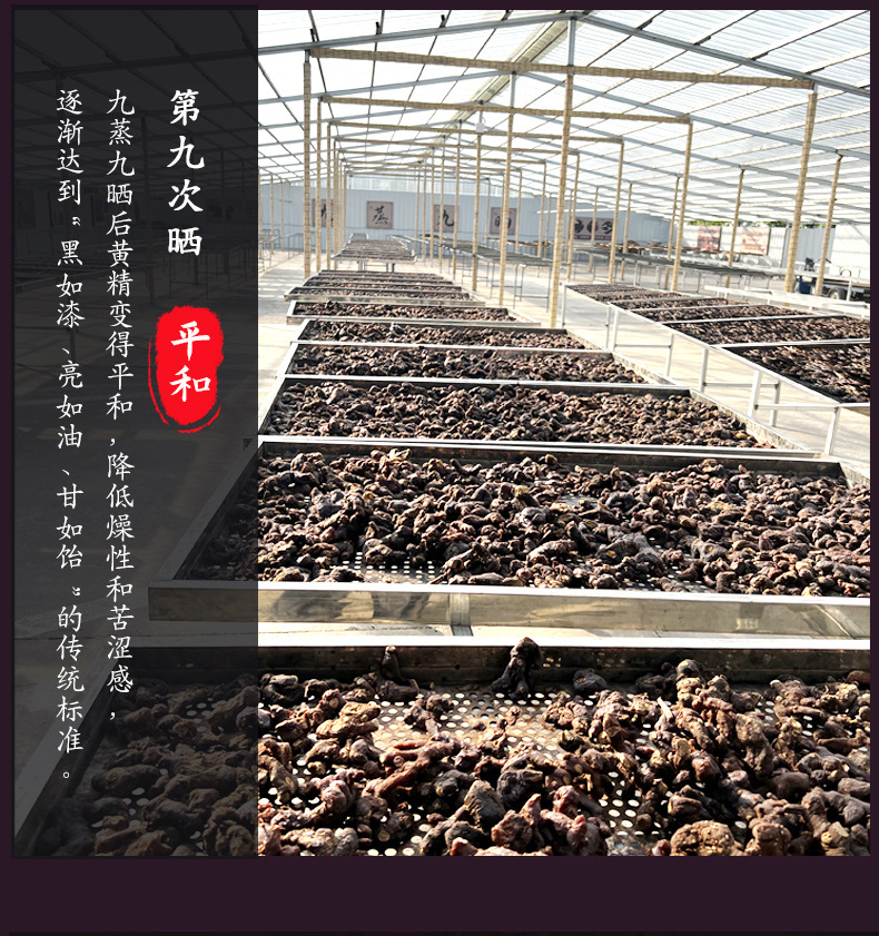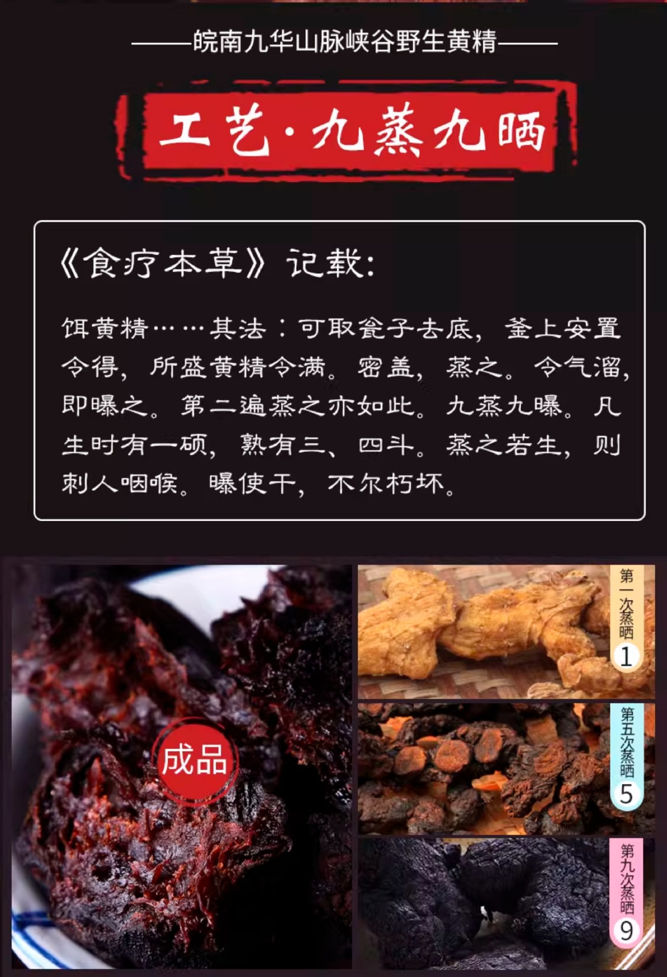 包装规格 【精品】九制黄精100g(净重),【精品】九制黄精250g(净重),【精品】九制黄精500g(净重),【精品】九制黄精1000g(净重)