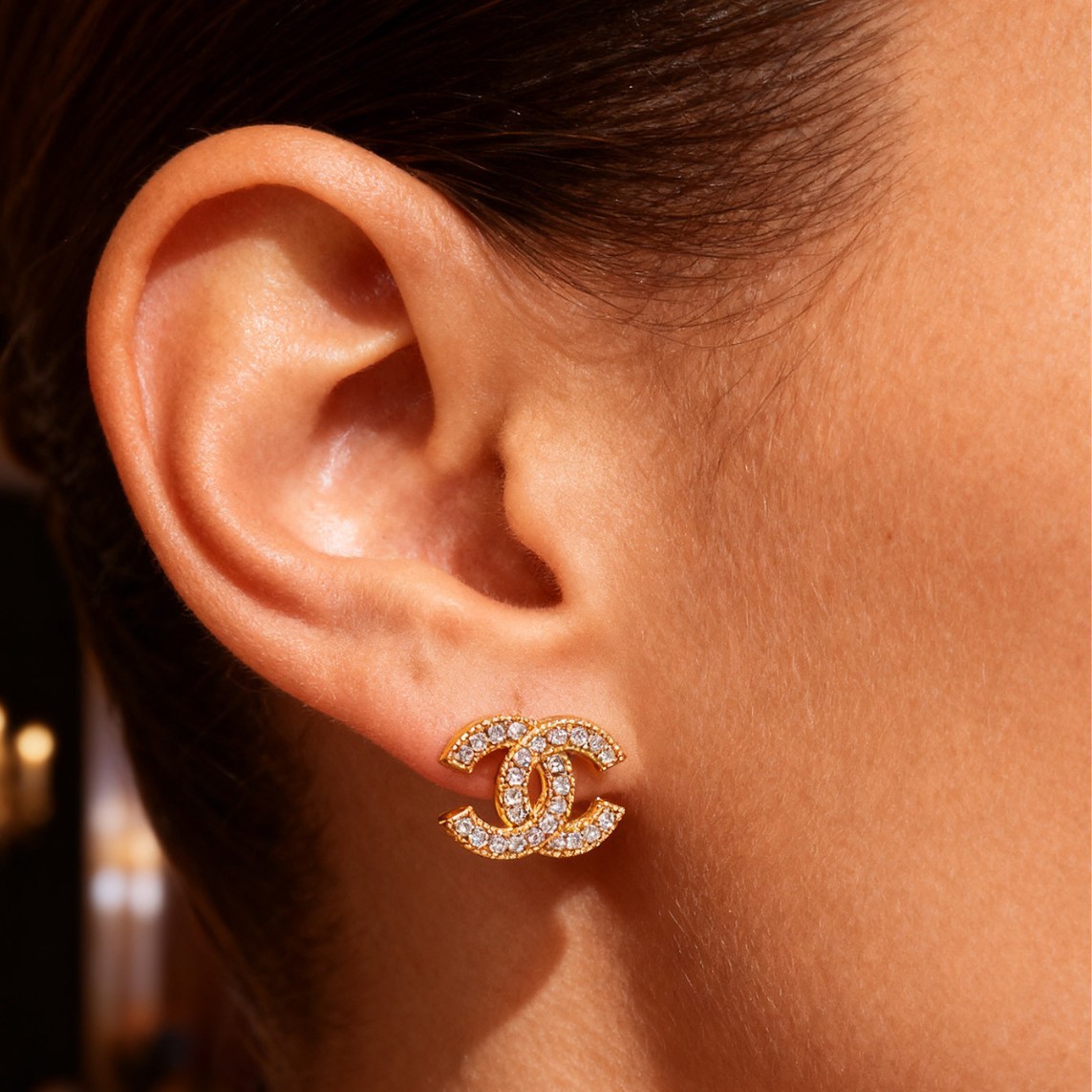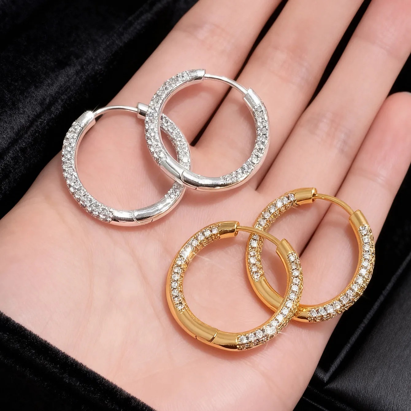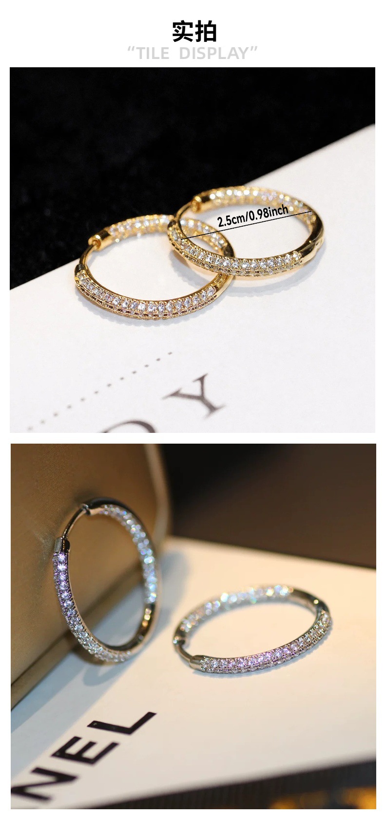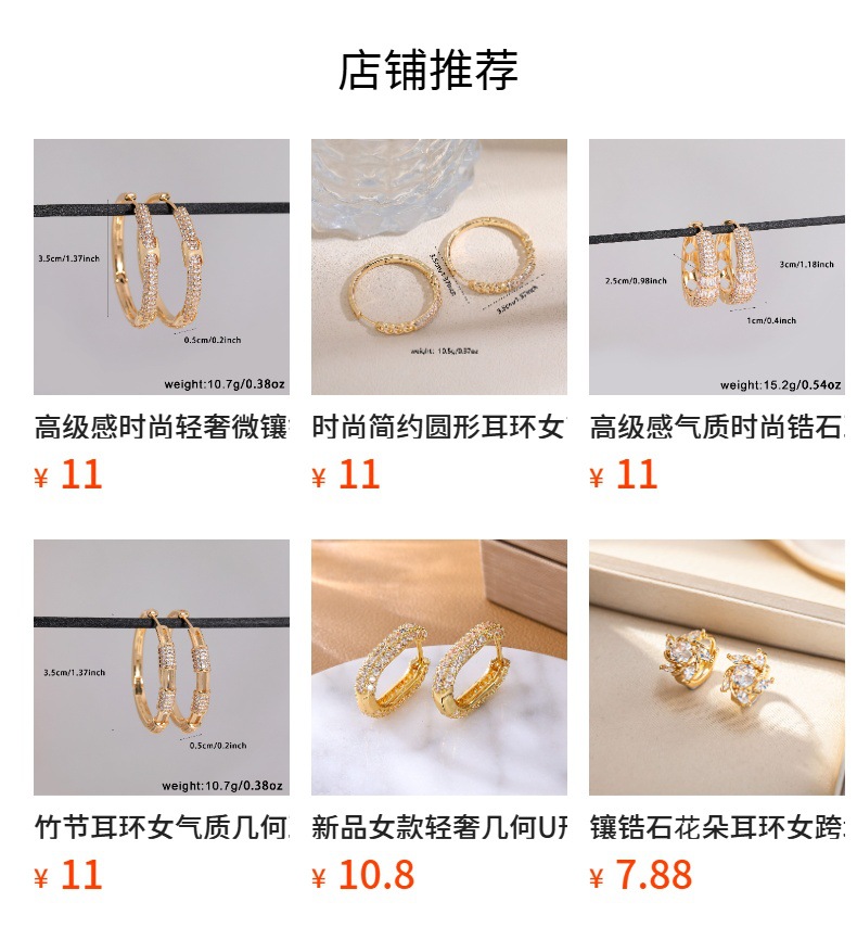 欧美轻奢时尚ins简约铜镶锆满锆耳扣 小众设计高级感耳饰批发