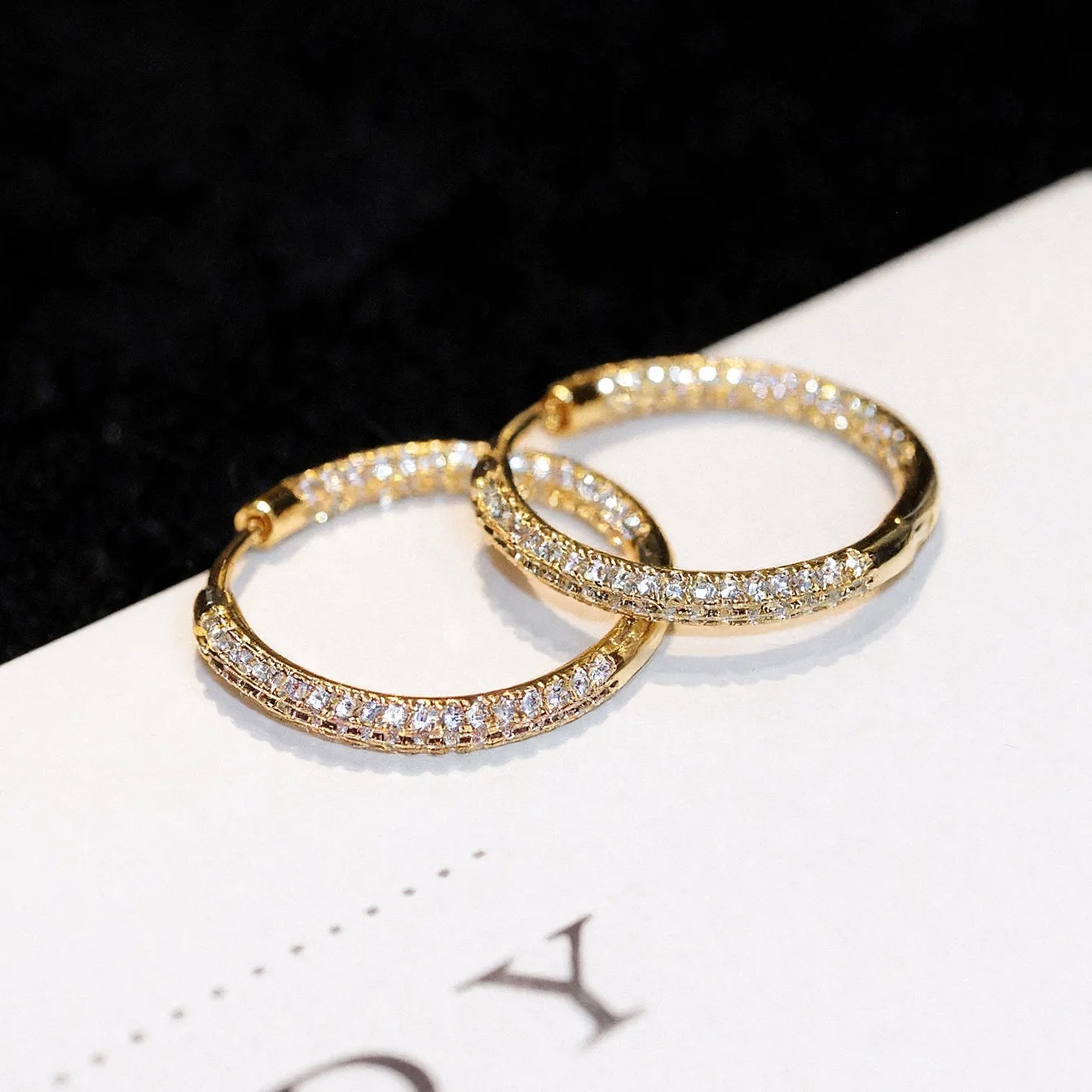 欧美冷淡风满锆圆圈耳扣轻奢小众高级感耳圈女跨境设计感耳饰