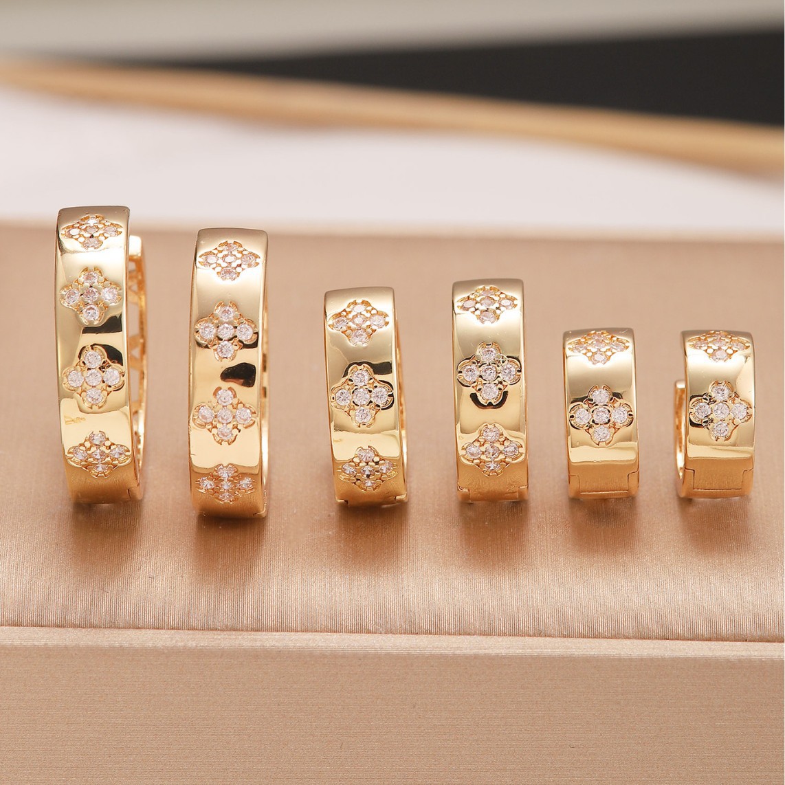 欧美镂空多规格幸运四叶草耳扣 奢华优雅小众设计百搭高级感耳饰
