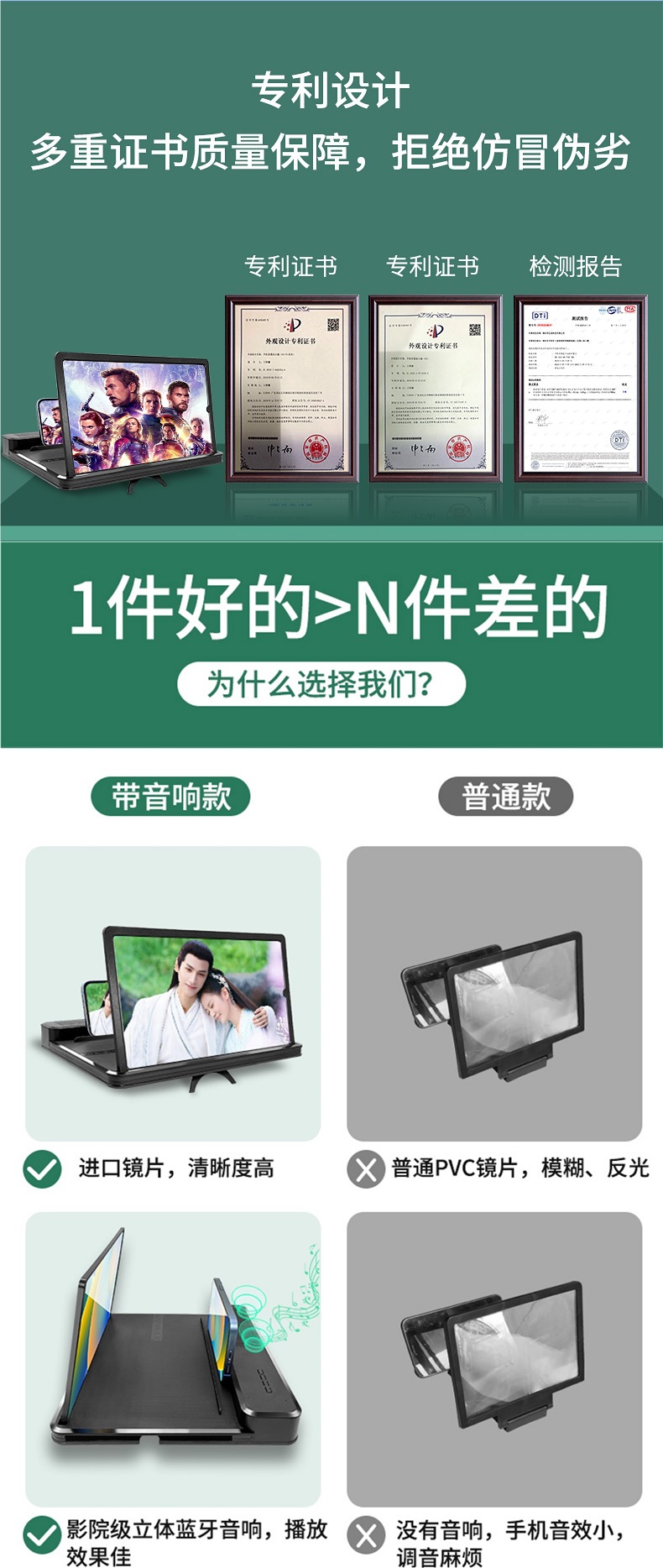 手机屏幕放大器大屏超清护眼高清横竖两用带音响蓝光镜桌面追剧视