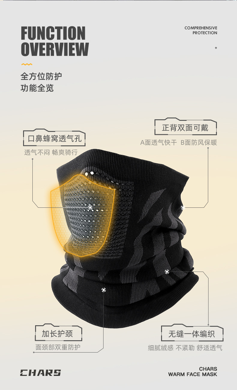 跨境骑行头巾围脖户外防风保暖护耳冬季脖套拉绳防寒骑行面罩定制