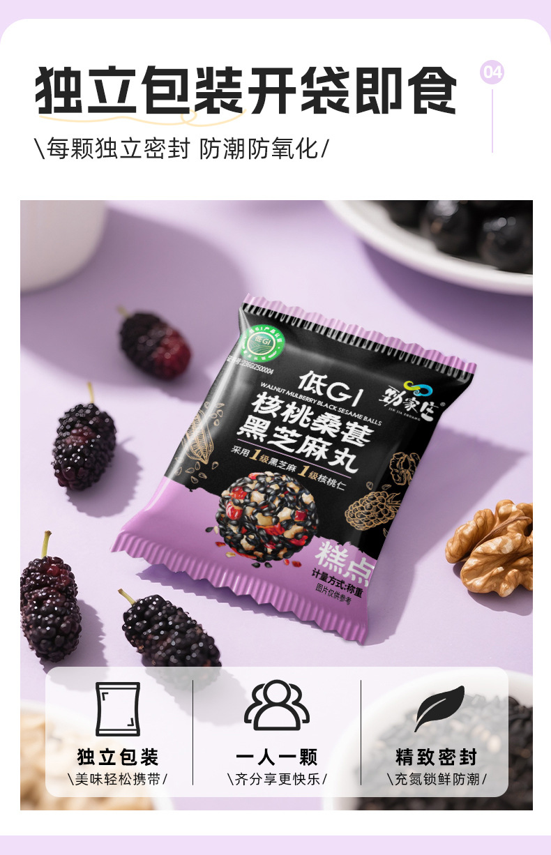 劲家庄黑芝麻丸核桃桑葚枸杞五黑营养孕妇即食纯黑芝麻球劲哥同