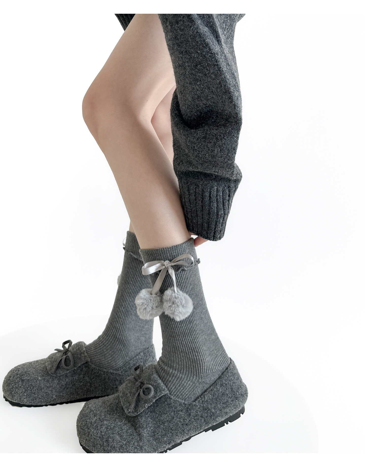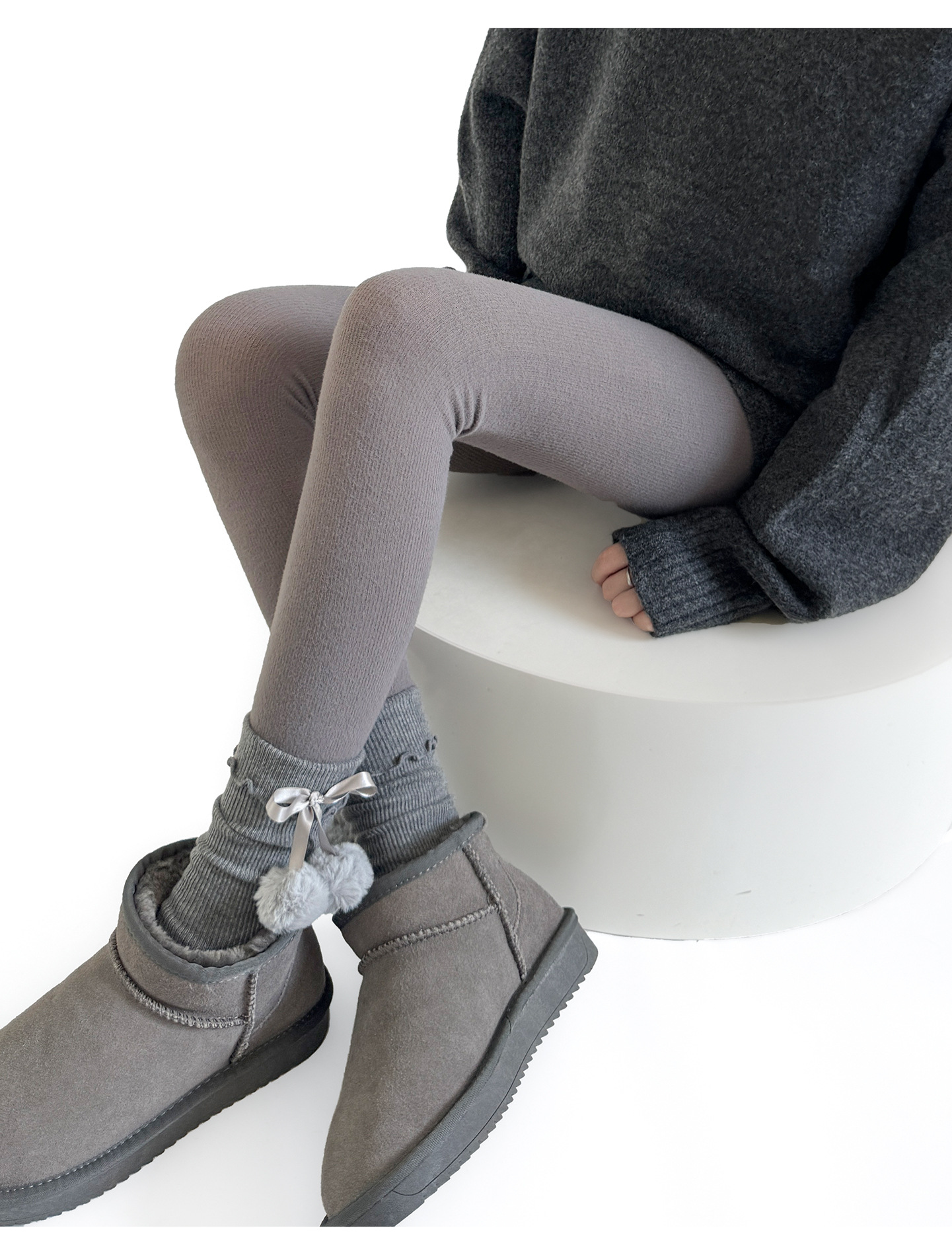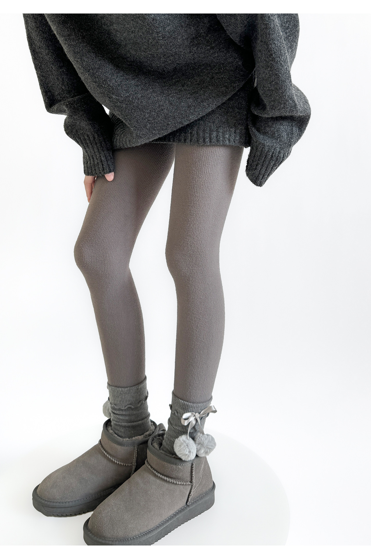 秋冬の灰色はやせているレギンスの靴下を見せます。