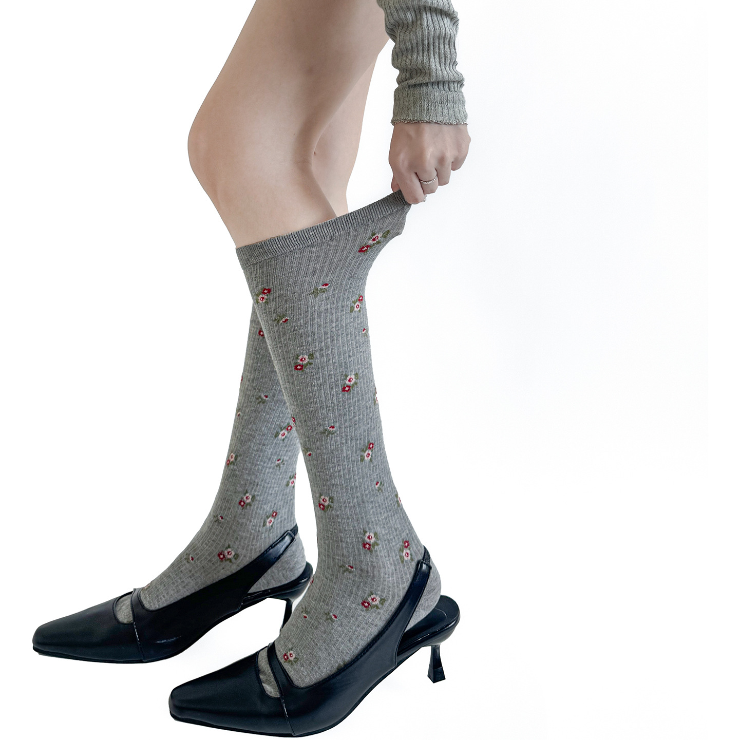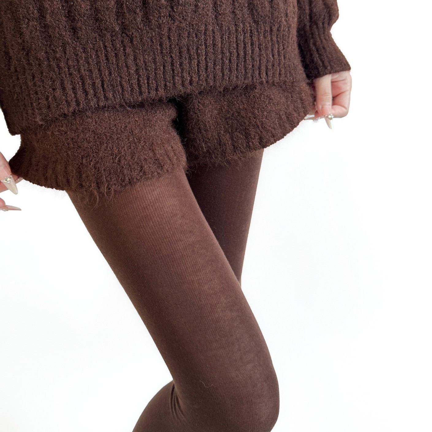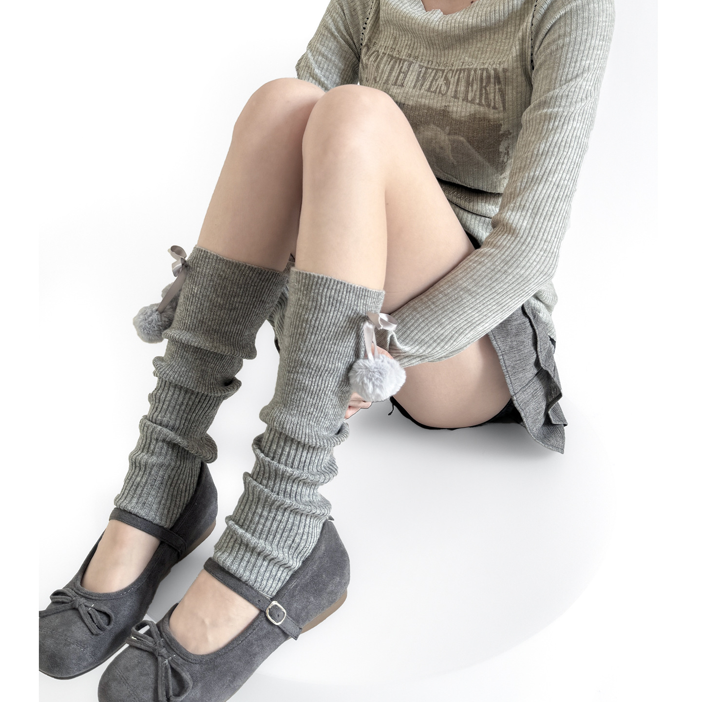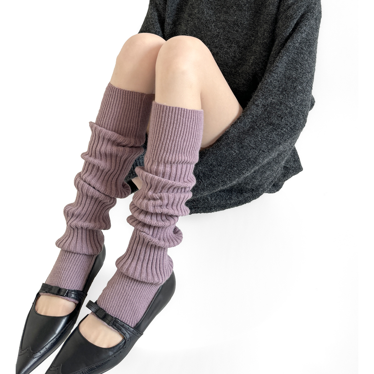 秋冬の灰色はやせているレギンスの靴下を見せます。