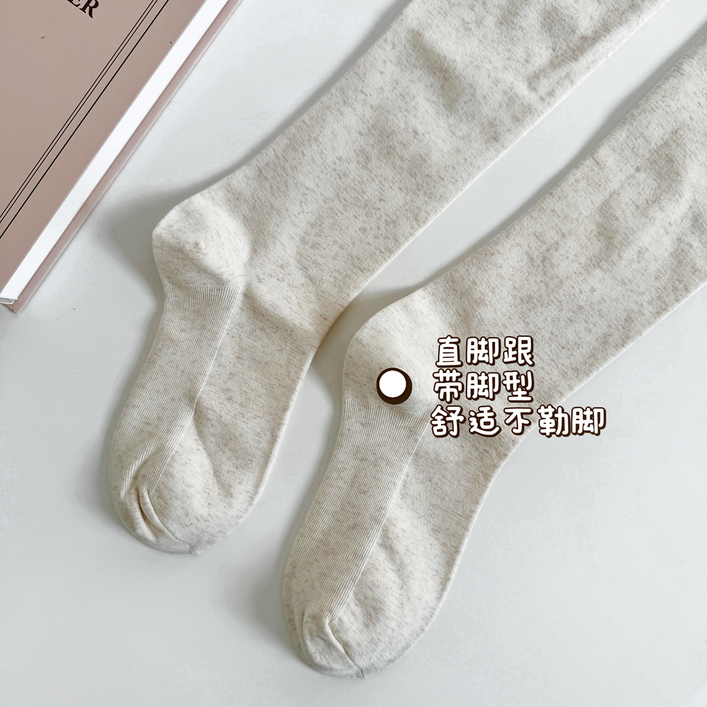 秋冬竖纹碎花显瘦小腿袜子燕麦色甜美中筒袜百搭咖色堆堆袜子春秋