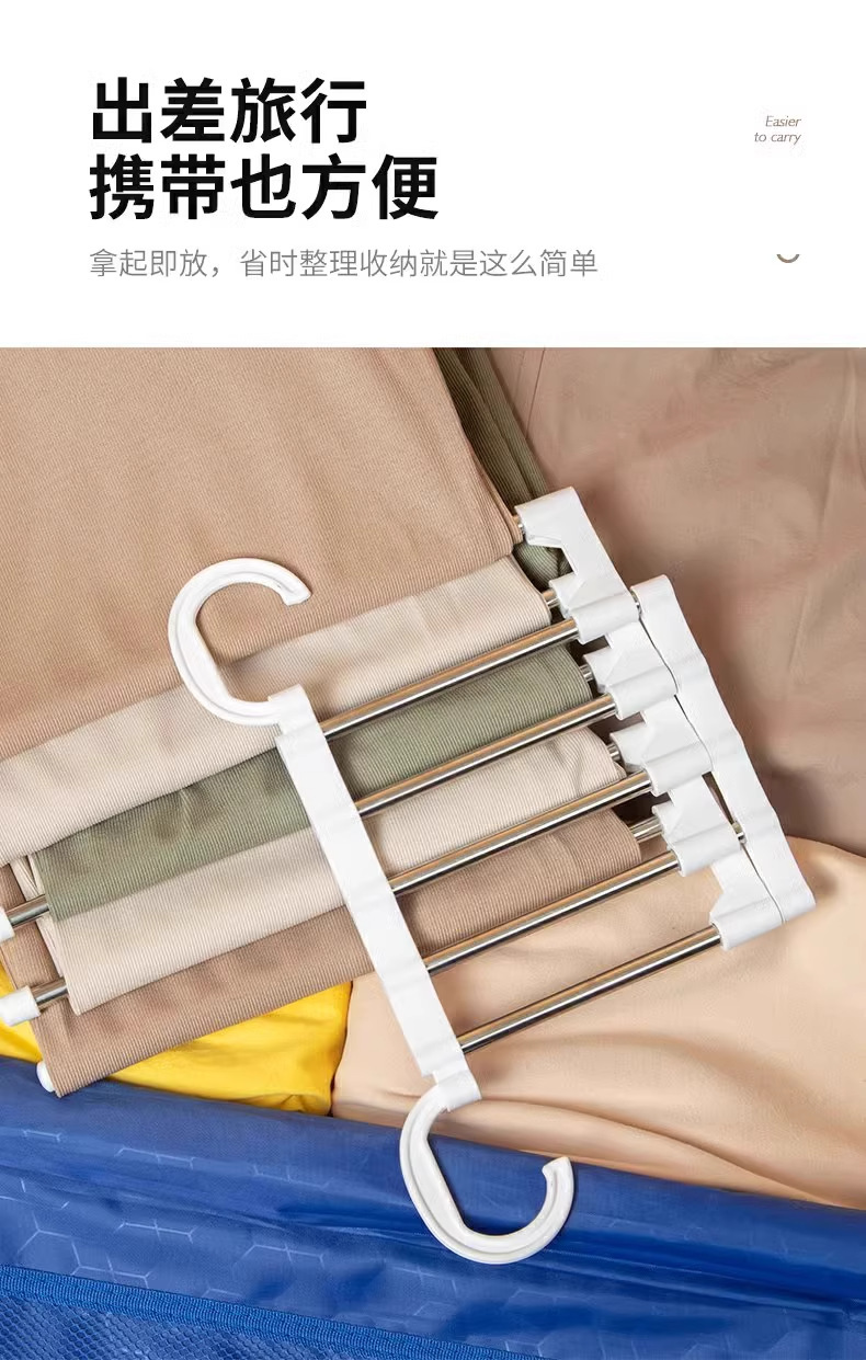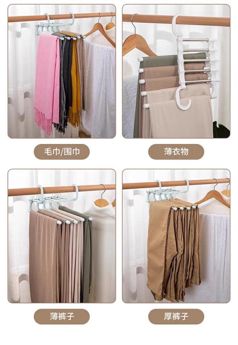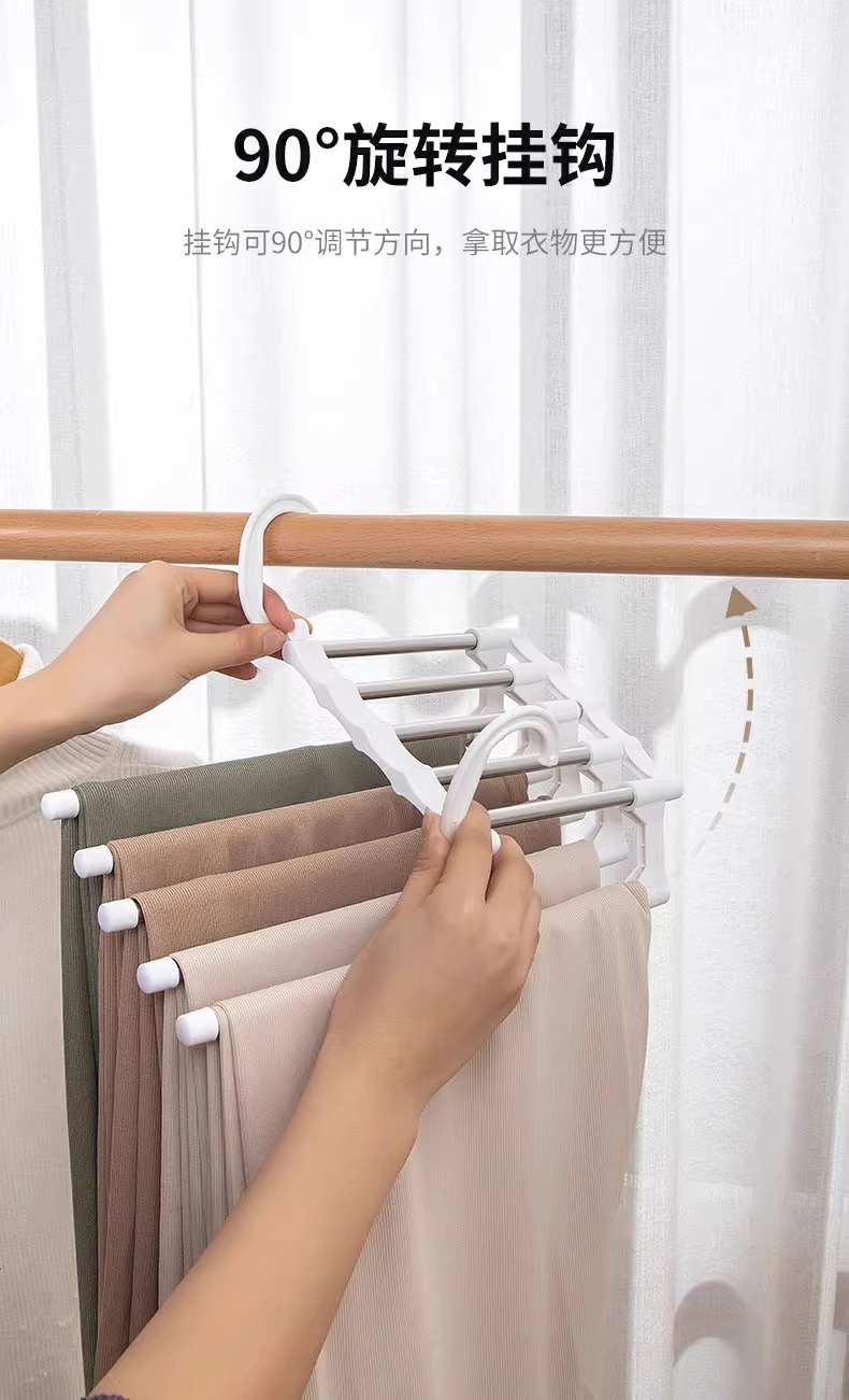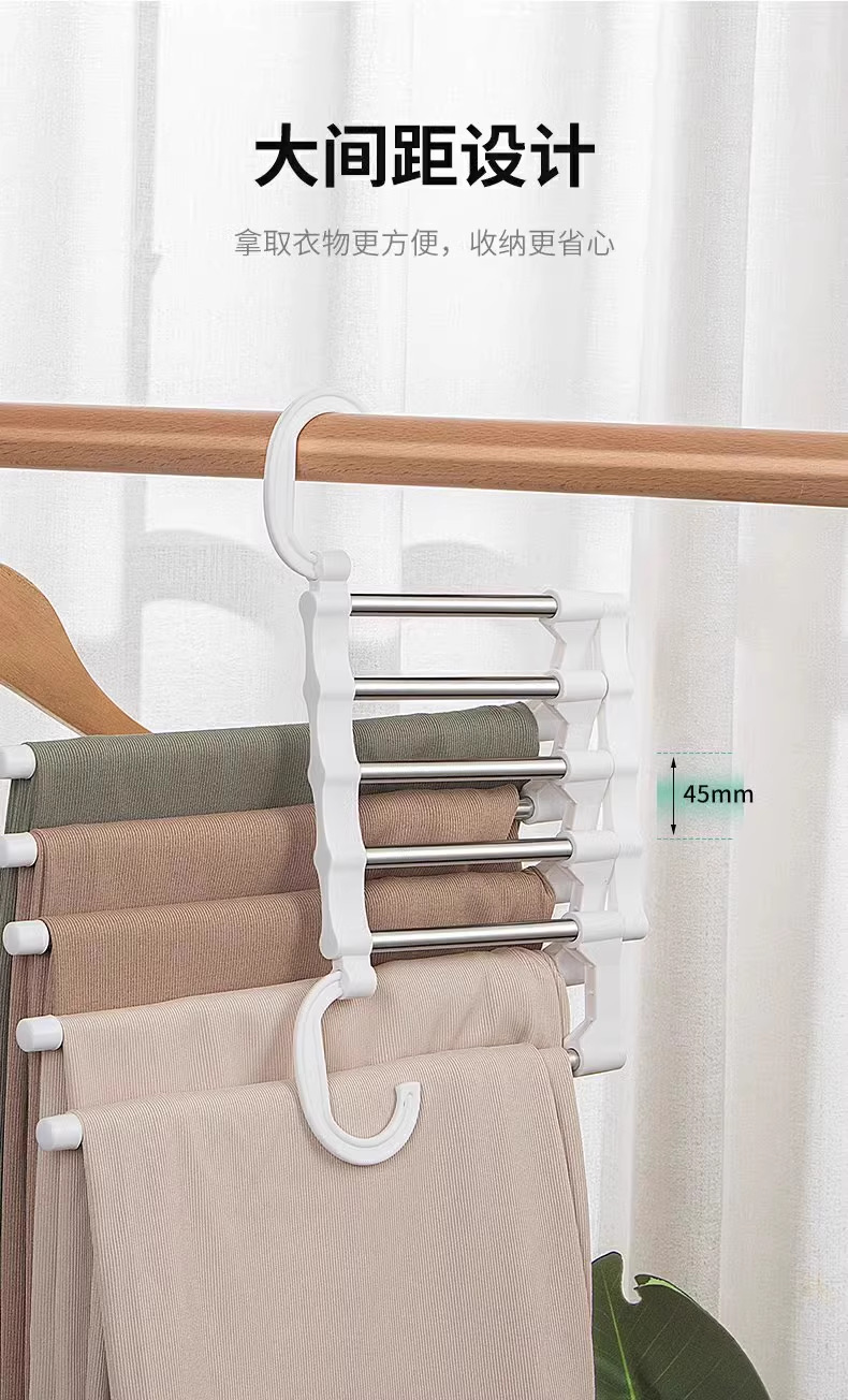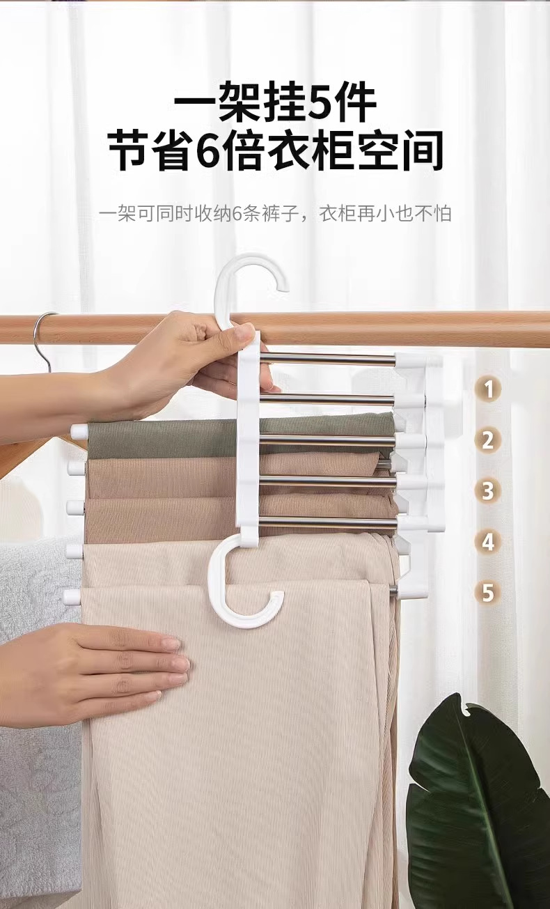 直销现货大号折叠裤架不锈钢多功能衣架魔术裤架五层收纳伸缩裤架