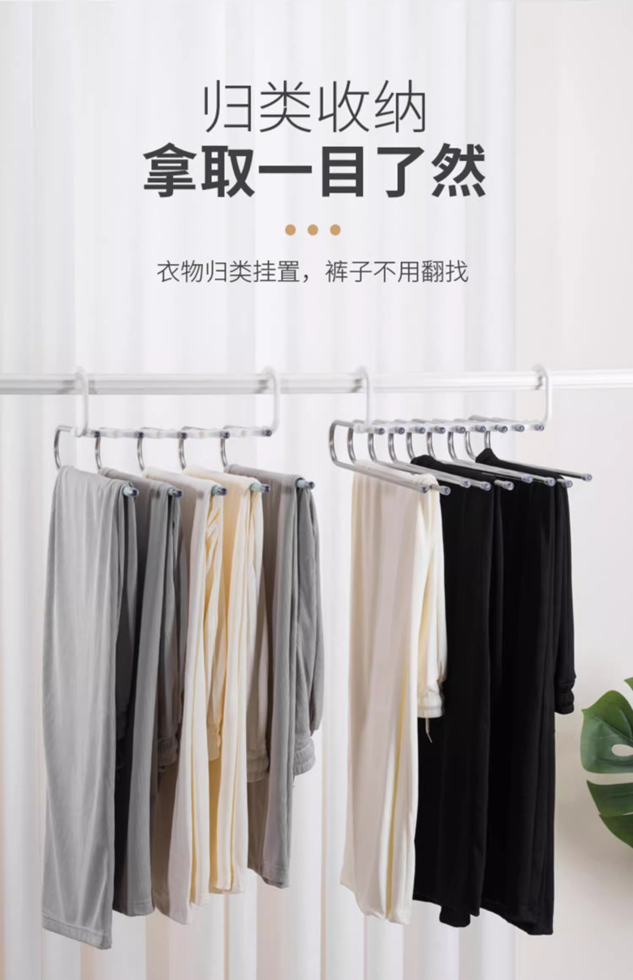 ステンレスズボンラック家庭用収納神器折り畳み無痕ズボンラックハンガーマジック滑り止め多機能ハンガー