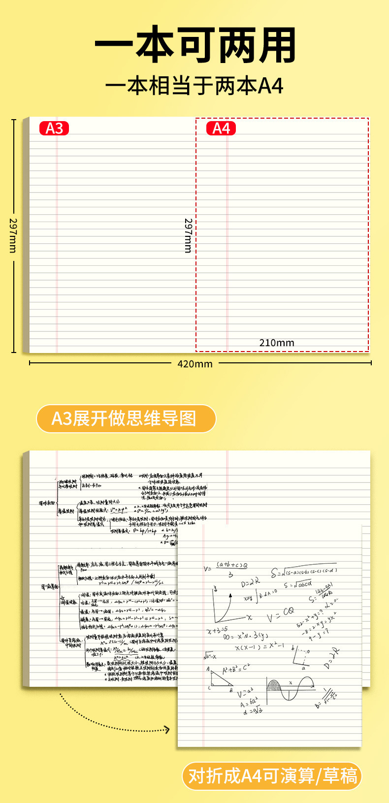 A3试卷刷题本思维导图草稿纸横线易撕考研学生本拍纸本大尺寸笔记