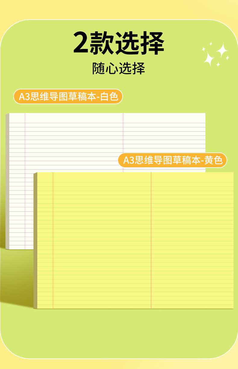 封面颜色 白色思维导图横线款(双面印刷)【A3-50张】,黄色思维导图横线款(双面印刷)【A3-50张】,黄色空白款(双面印刷)【A3-50张】,白色方格款(双面印刷)【A3-50张】,白色思维导图横线款(双面印刷)【A3-30张】,黄色思维导图横线款(双面印刷)【A3-30张】