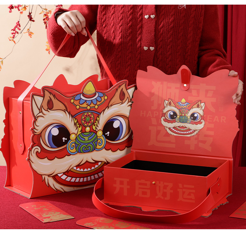 醒狮新年春节坚果零食大礼包伴手礼盒大号手提包装盒特产礼物空盒