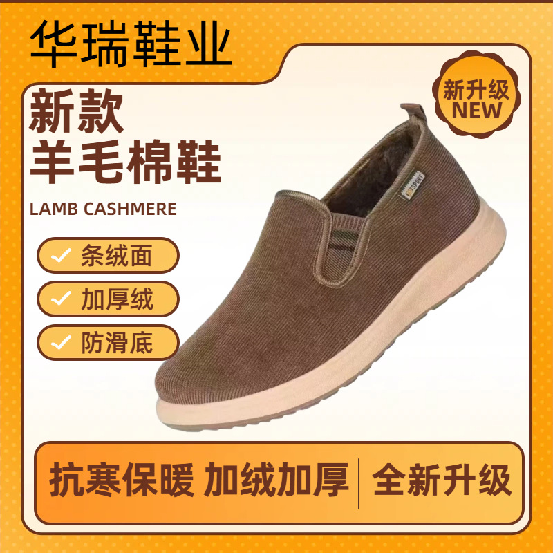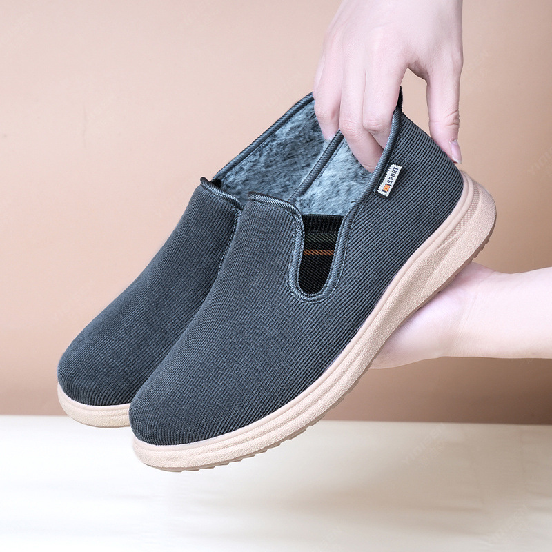 新款冬季加绒老北京条绒兔毛加绒棉鞋轻便一脚蹬休闲老人爸爸棉鞋