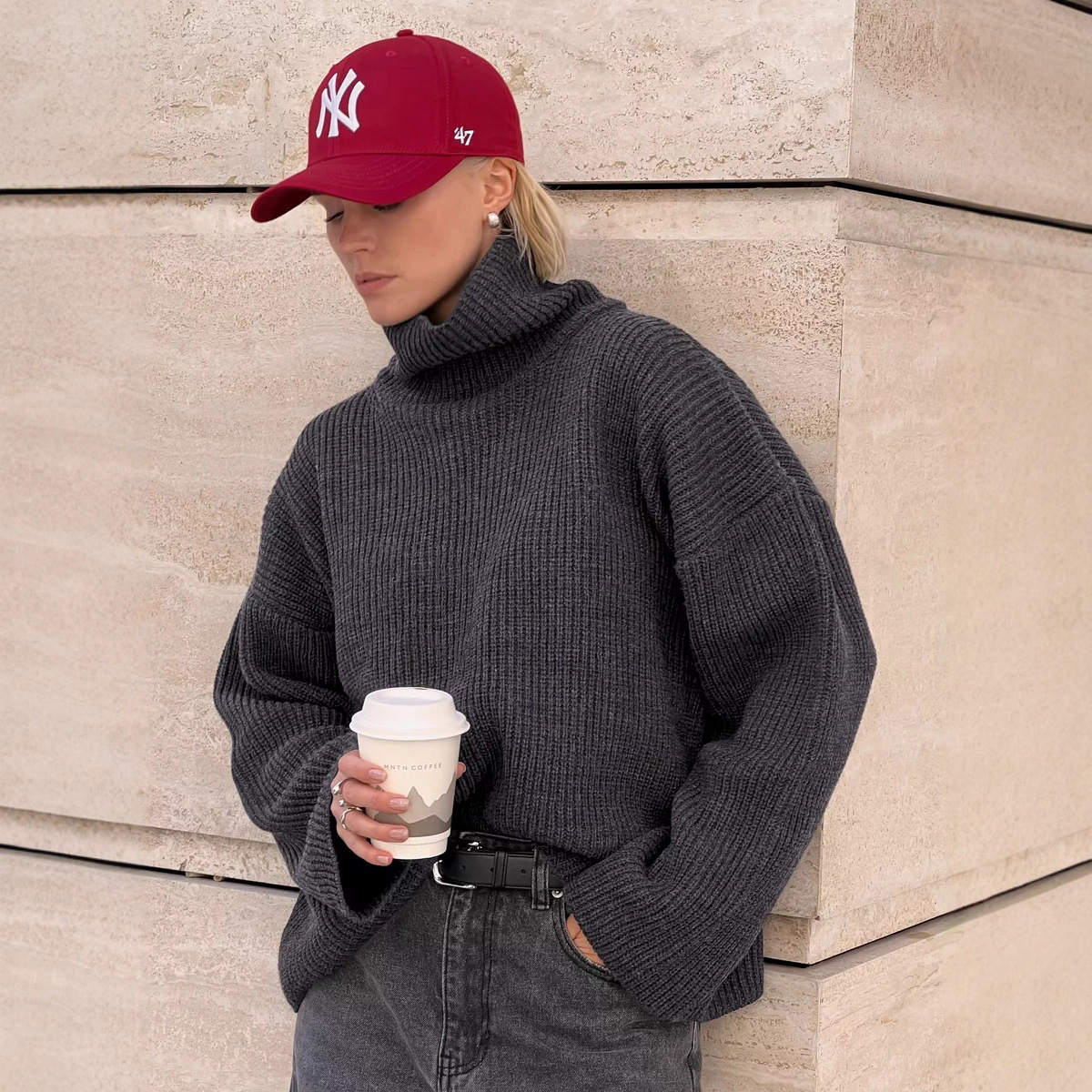 Свитер оверсайз 高领套头大码毛衣女秋冬宽松上衣