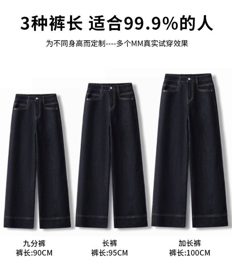 丹宁小个子牛仔裤2025年新款女秋冬流行阔腿裤加绒裤子九分直筒裤