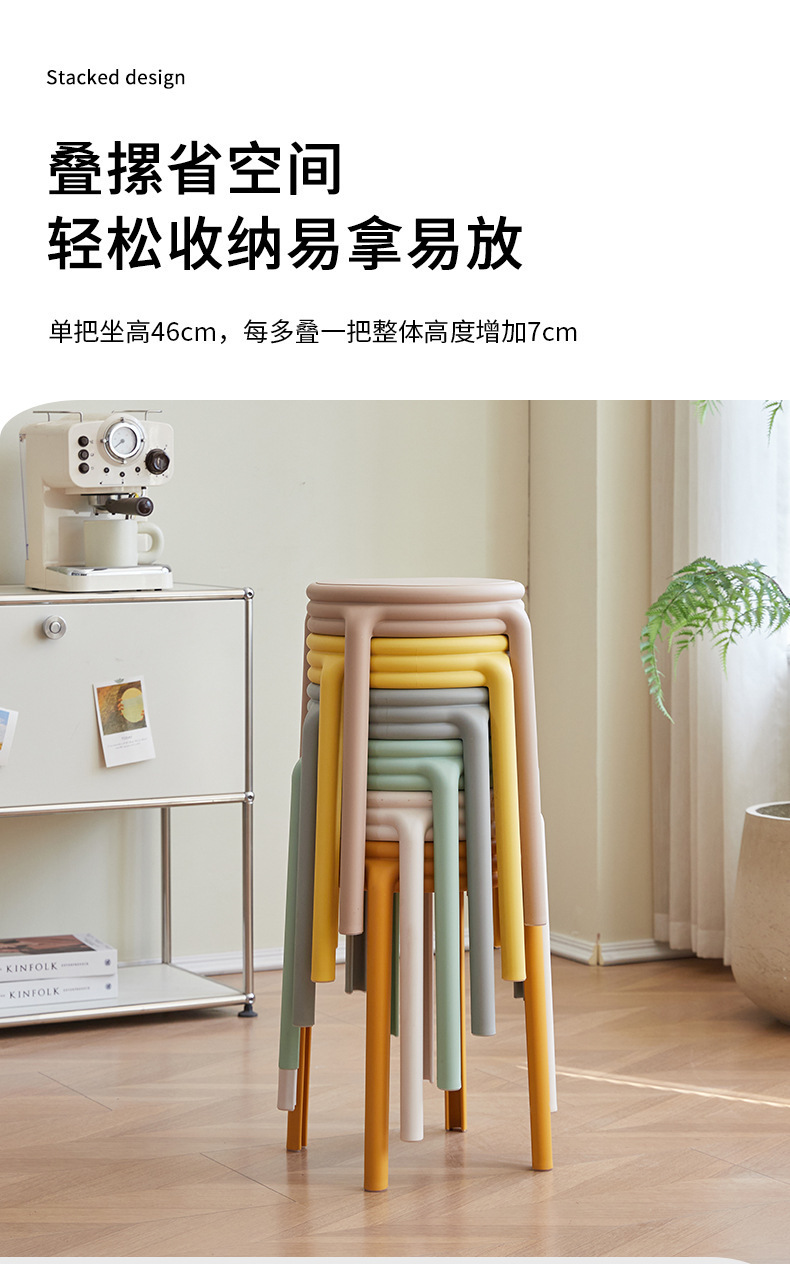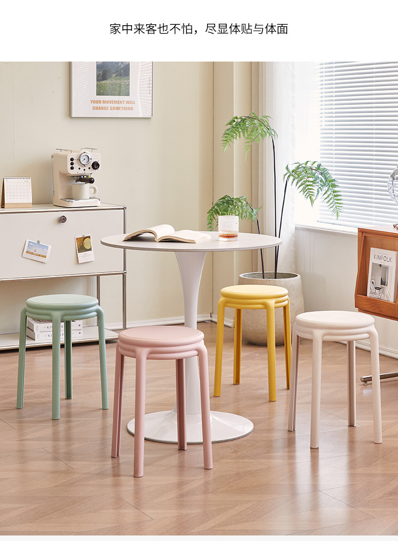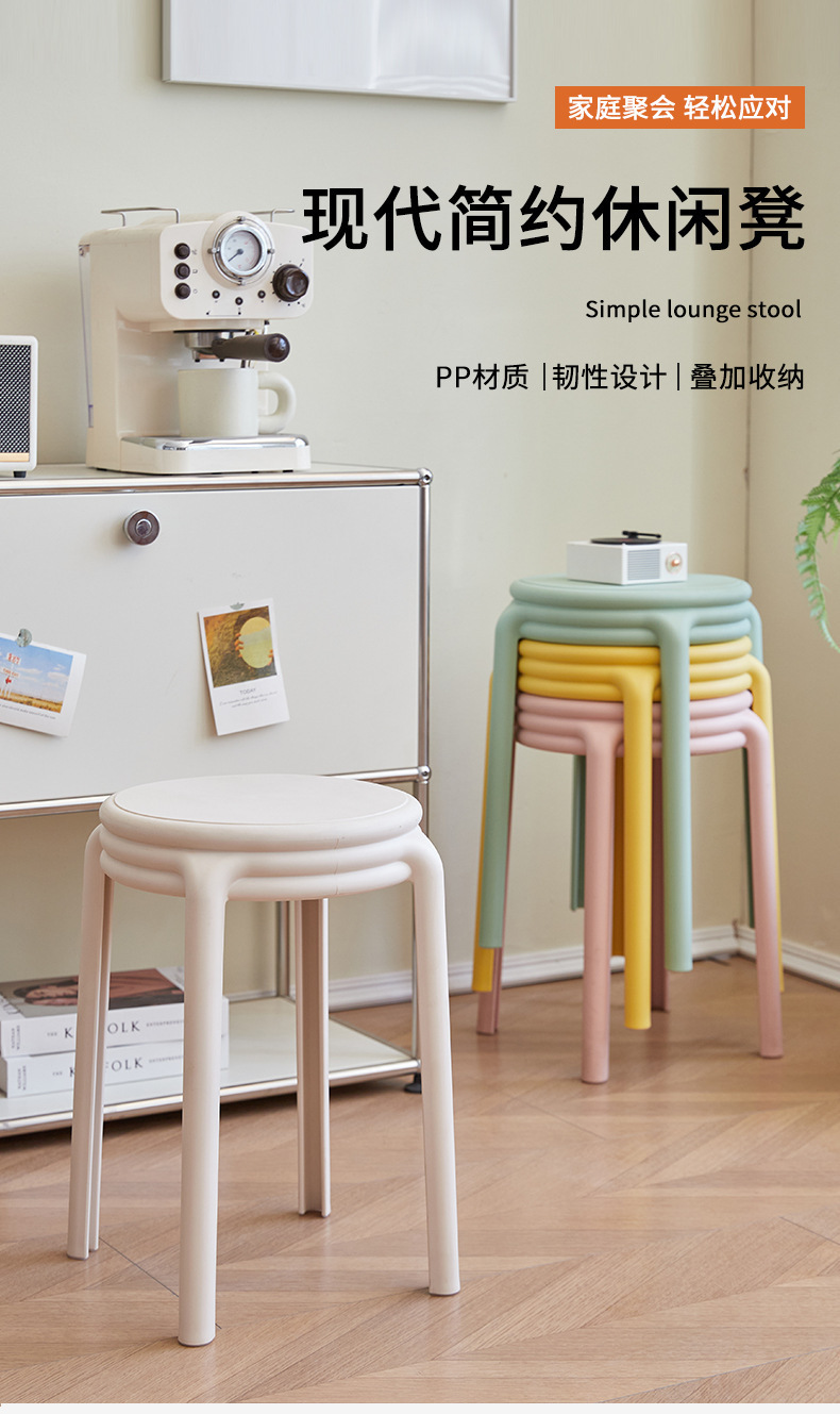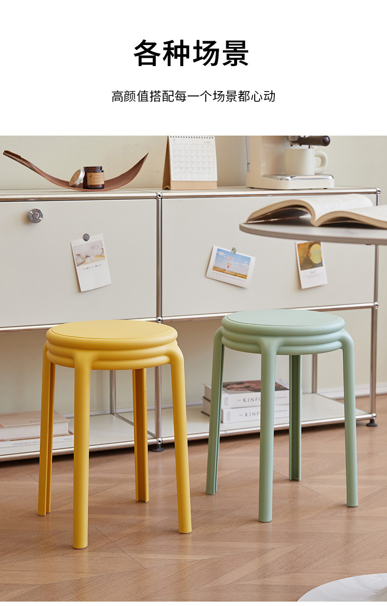 北欧塑料凳子可叠放凳子现代简约家用客厅餐厅圆凳子等位软包凳子