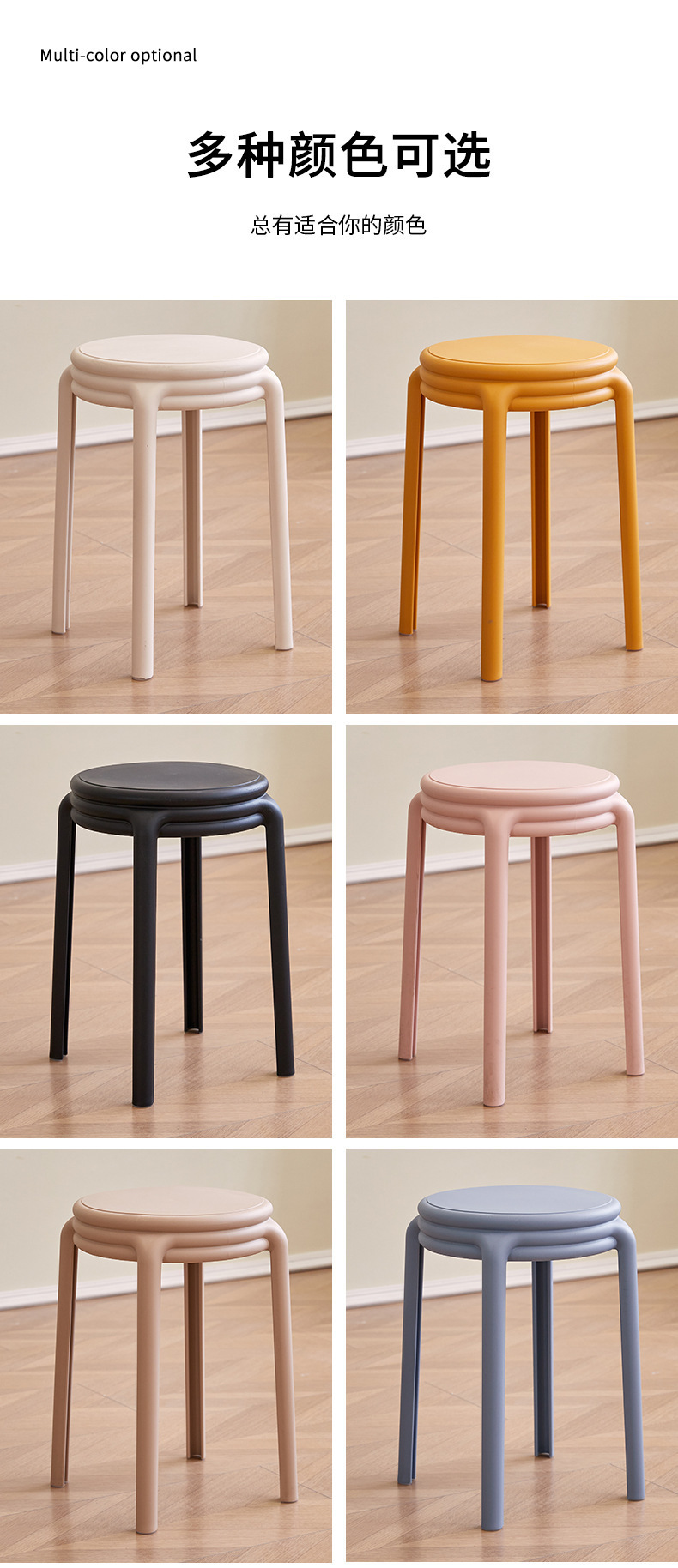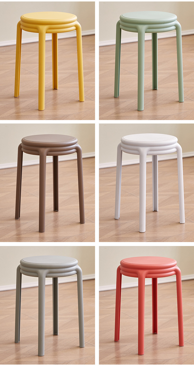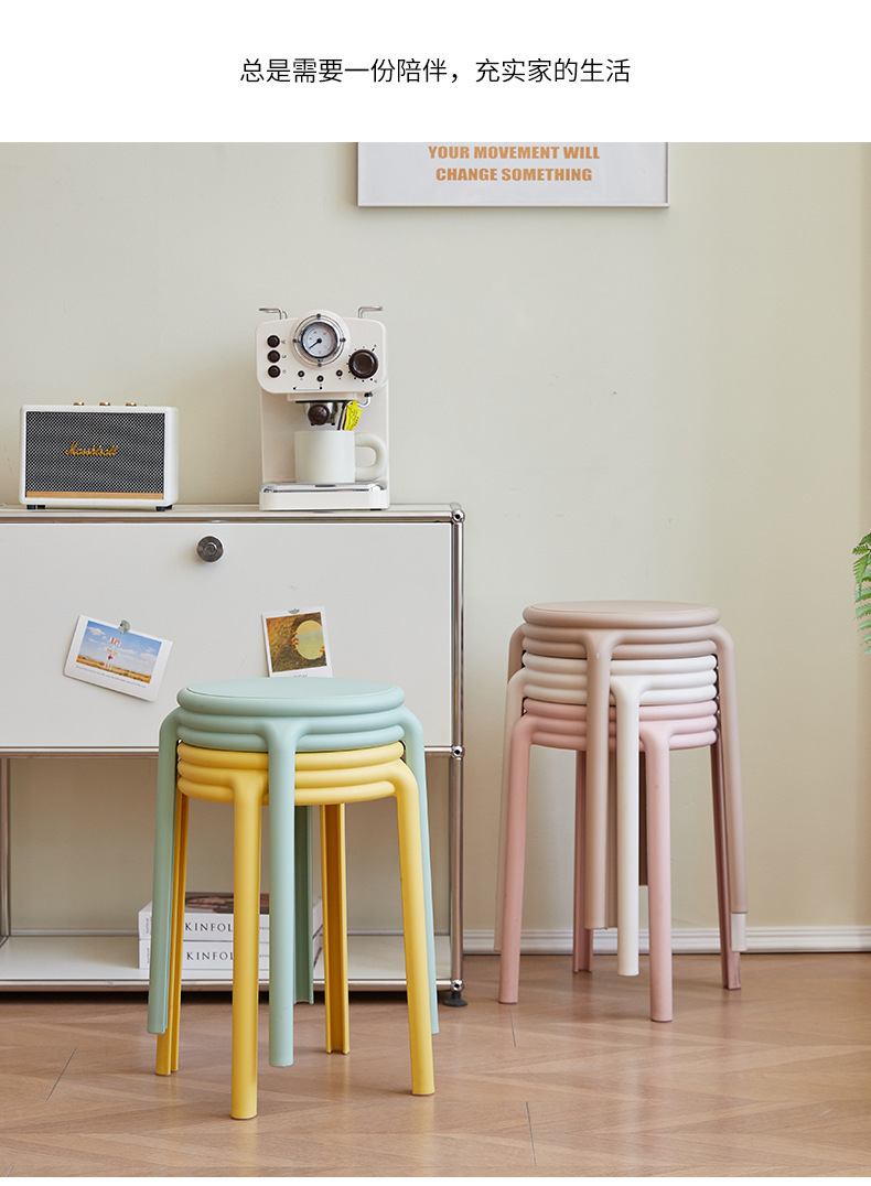 北欧塑料凳子可叠放凳子现代简约家用客厅餐厅圆凳子等位软包凳子