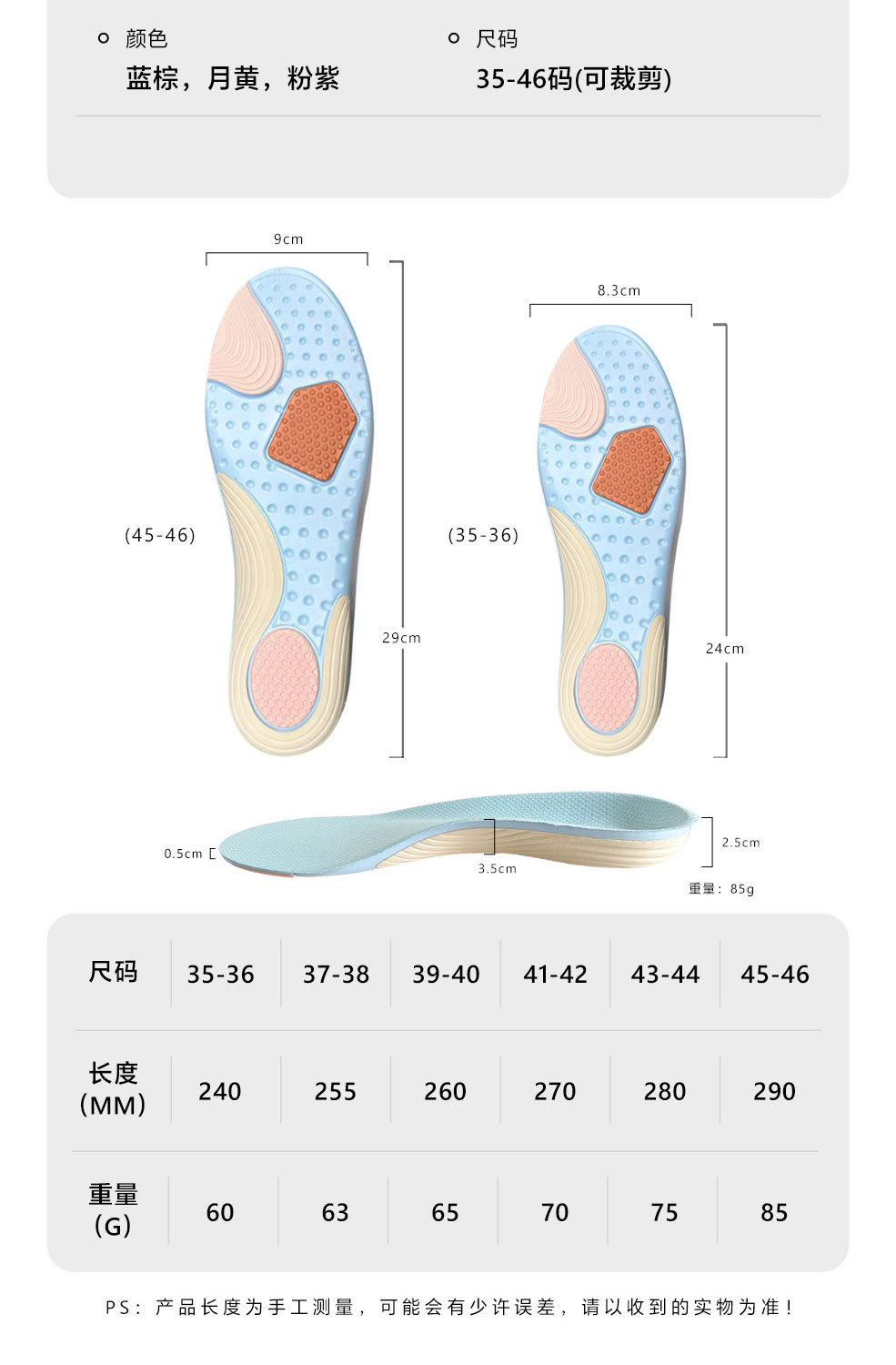 鞋垫尺码 35,36,39,38,40,41,42,43,44,45,46,37