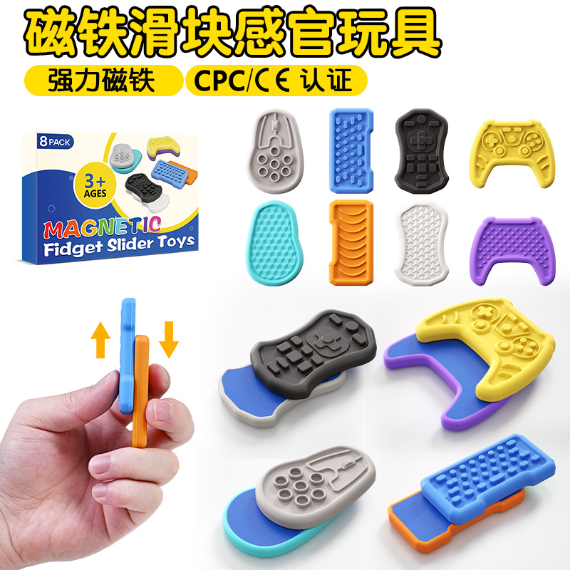 亚马逊新品FidgetToys游戏手柄磁吸滑块玩具儿童益智硅胶感官玩具