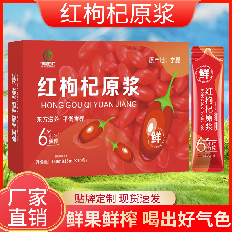 寧夏中寧産クコの実果汁、生果実搾り原液、源工場直送、150ml/箱、搾りたてクコの実ジュース
