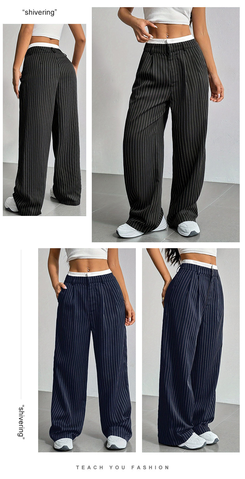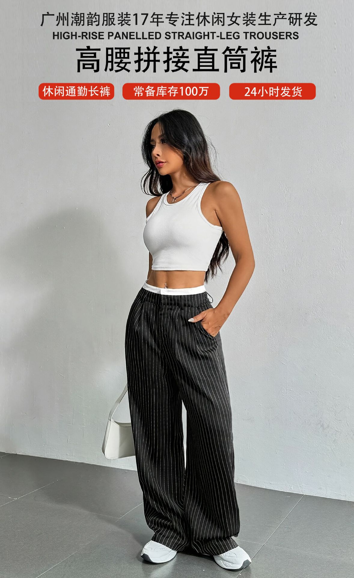窄版坠感秋冬小个子阔腿西装裤 显瘦高腰黑色女垂感高级感西装裤