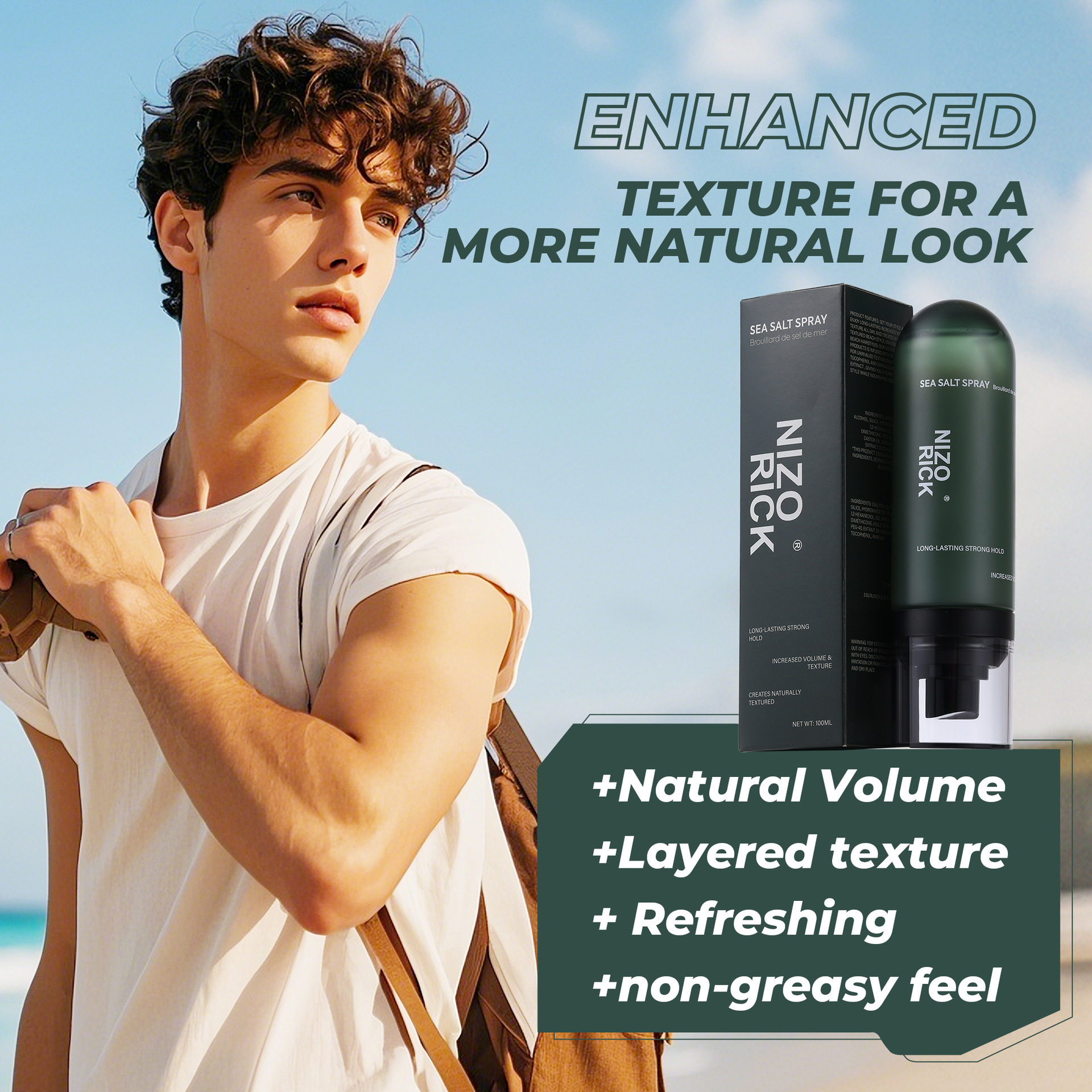 国境を越えた人気の男性用海塩スプレー、オイルコントロール、ふわふわ毛根、柔らかい髪の救世主、立体スタイリングふわふわスプレー