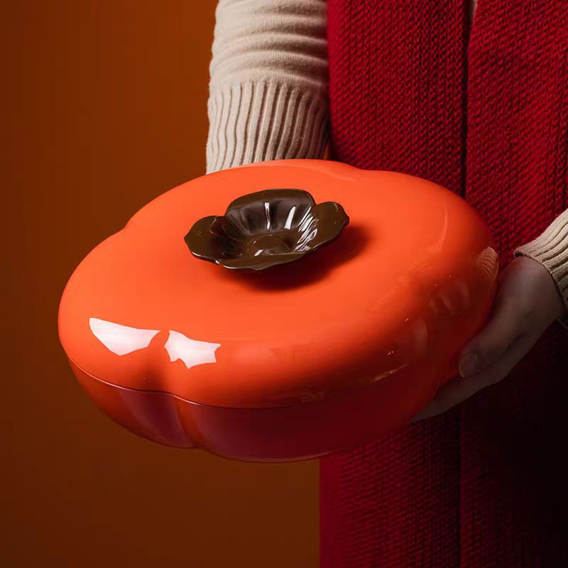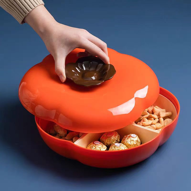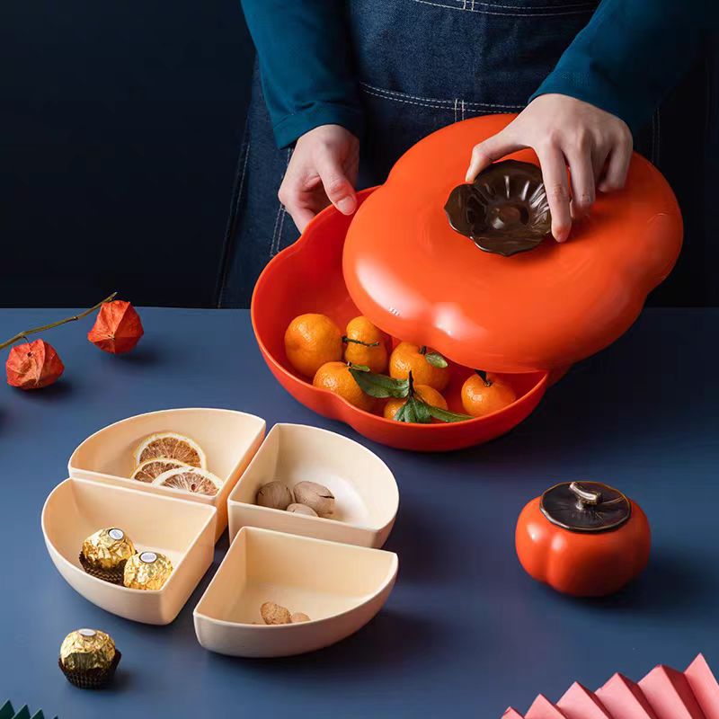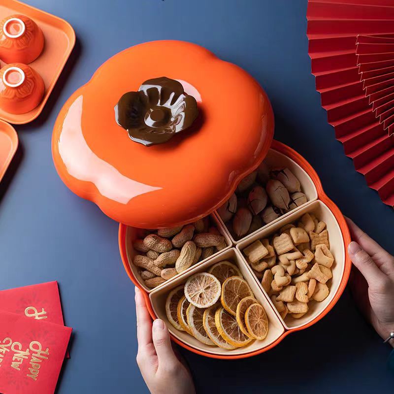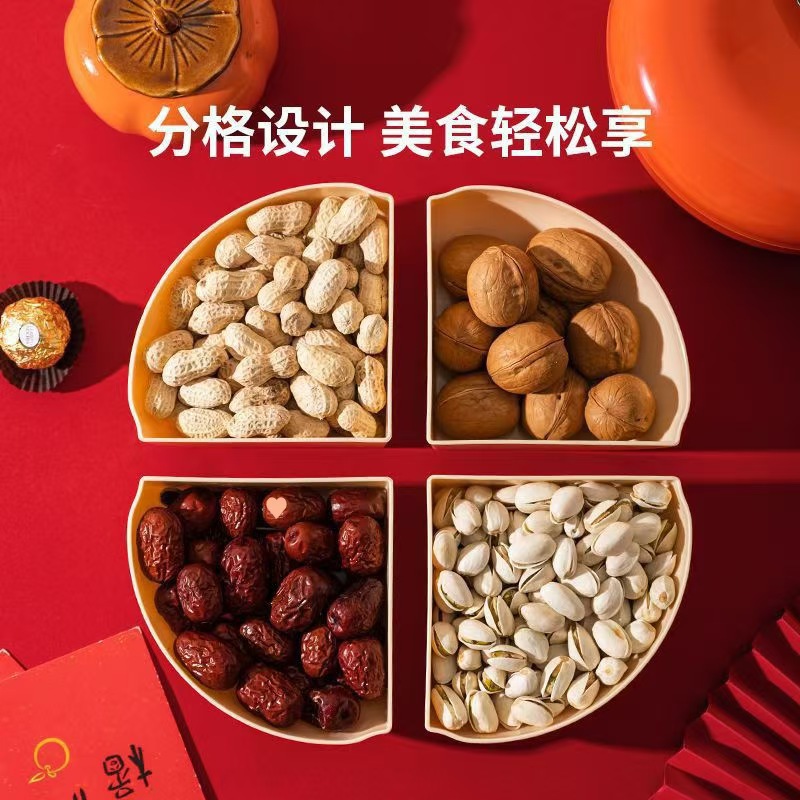 柿柿如意干果盘家用客厅茶几分格新年乔迁婚礼婚庆零食糖果收纳盒