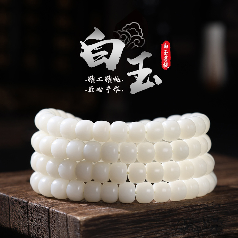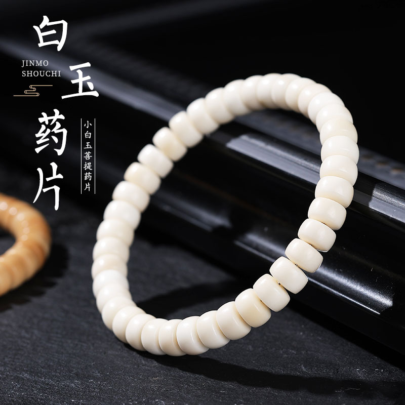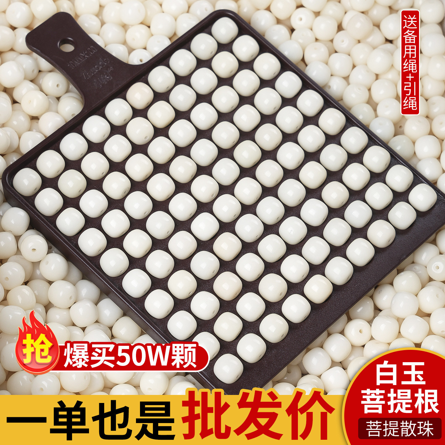 天然白玉菩提药片散珠串珠手串文玩绕指菩提佛珠念珠男女手链批发
