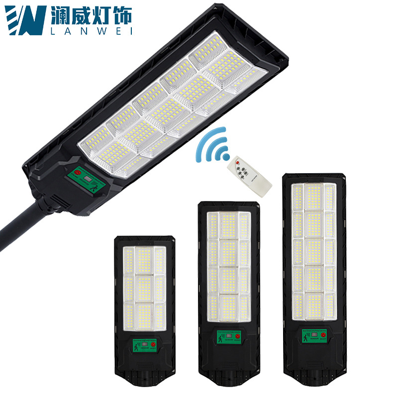 新款跨境太阳能庭院灯人体感应户外光控三面防水一体化太阳能路灯