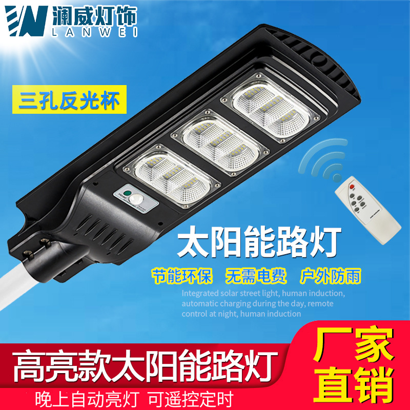 新型三穴反射カップ一体化太陽エネルギー街灯屋外人体感応led太陽エネルギー灯庭灯