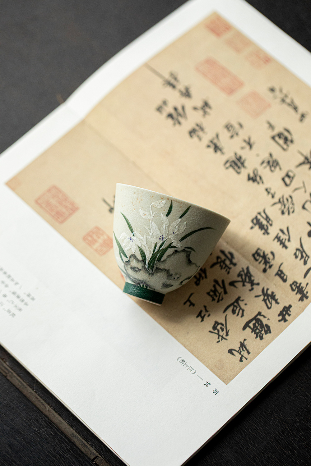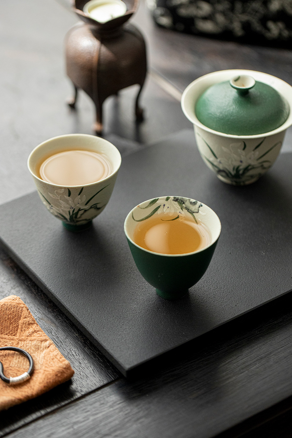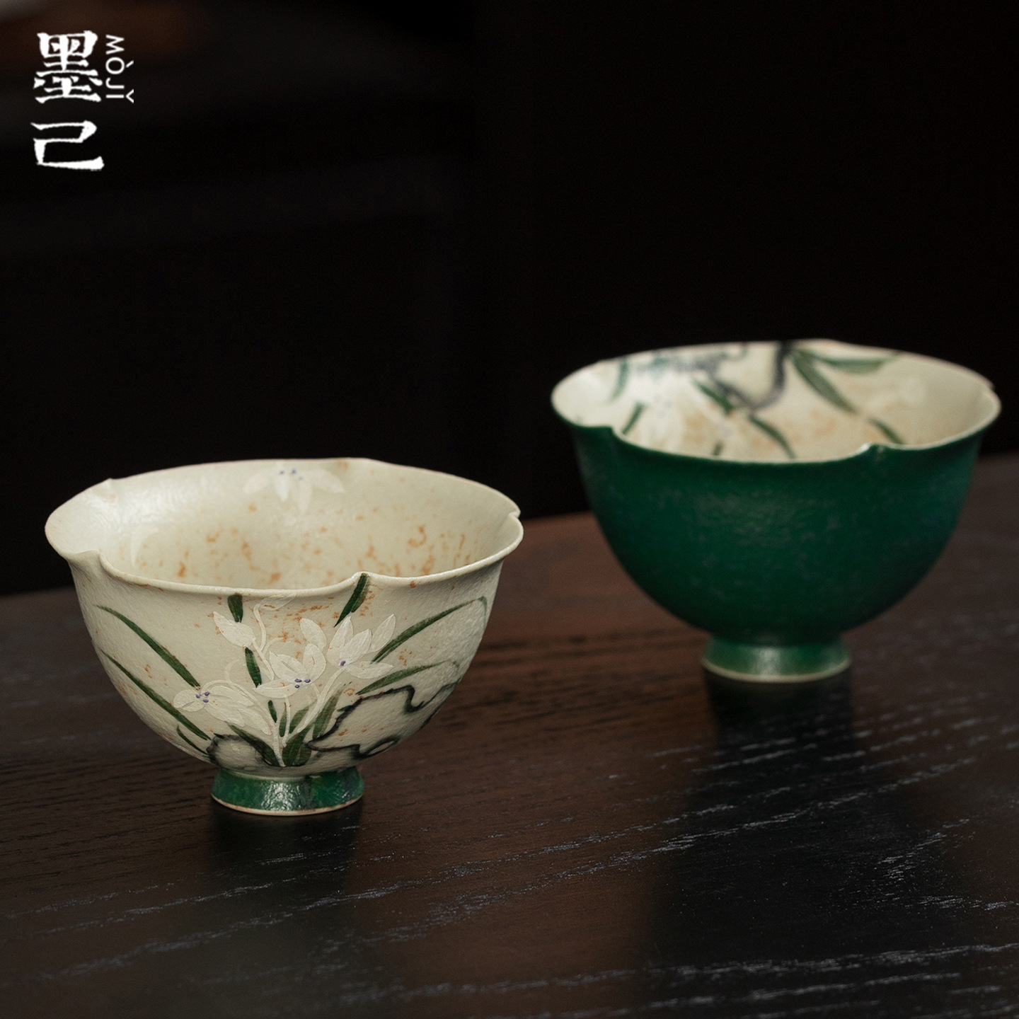 颜色分类 火石红-空谷幽兰-望月茶杯,墨绿内绘-空谷幽兰-望月茶杯