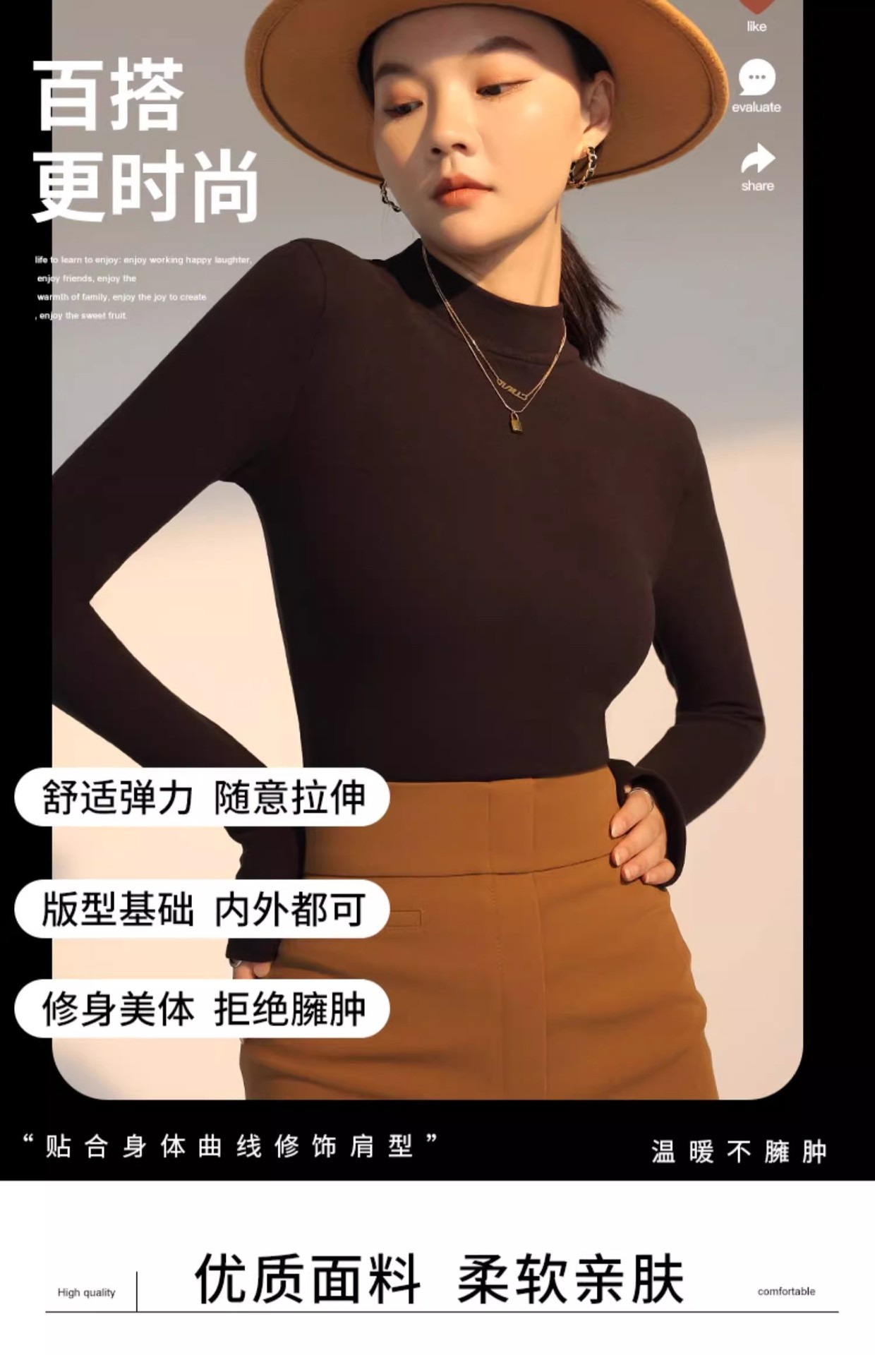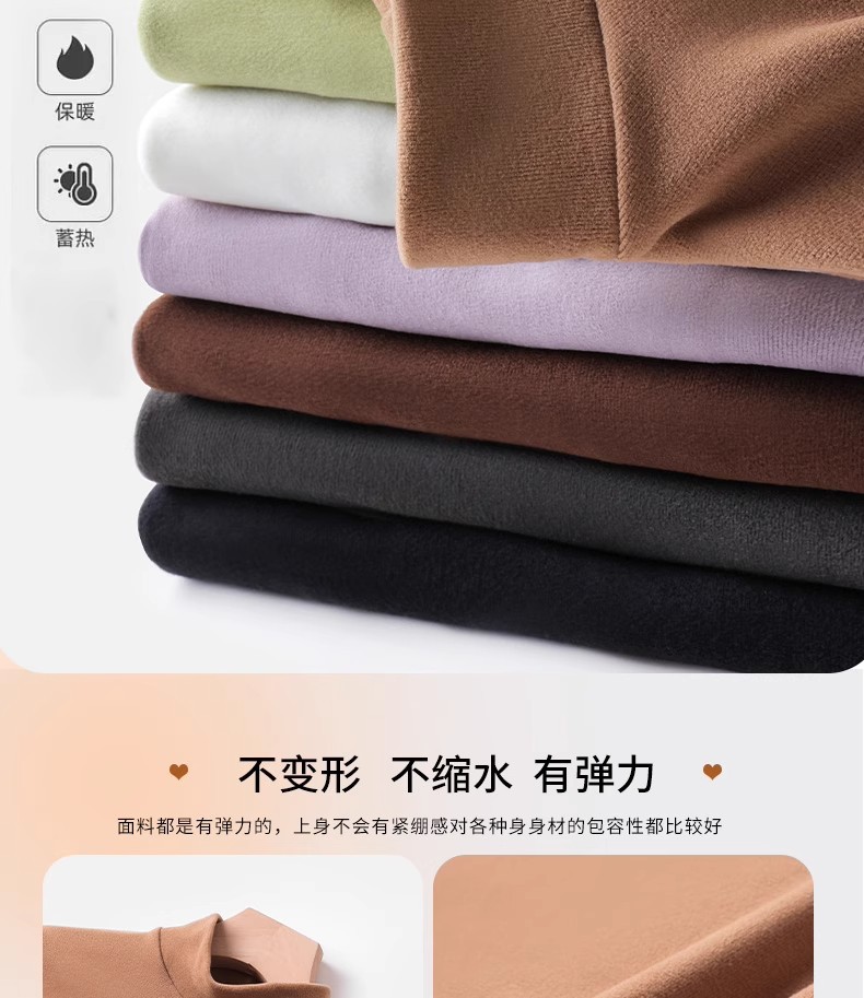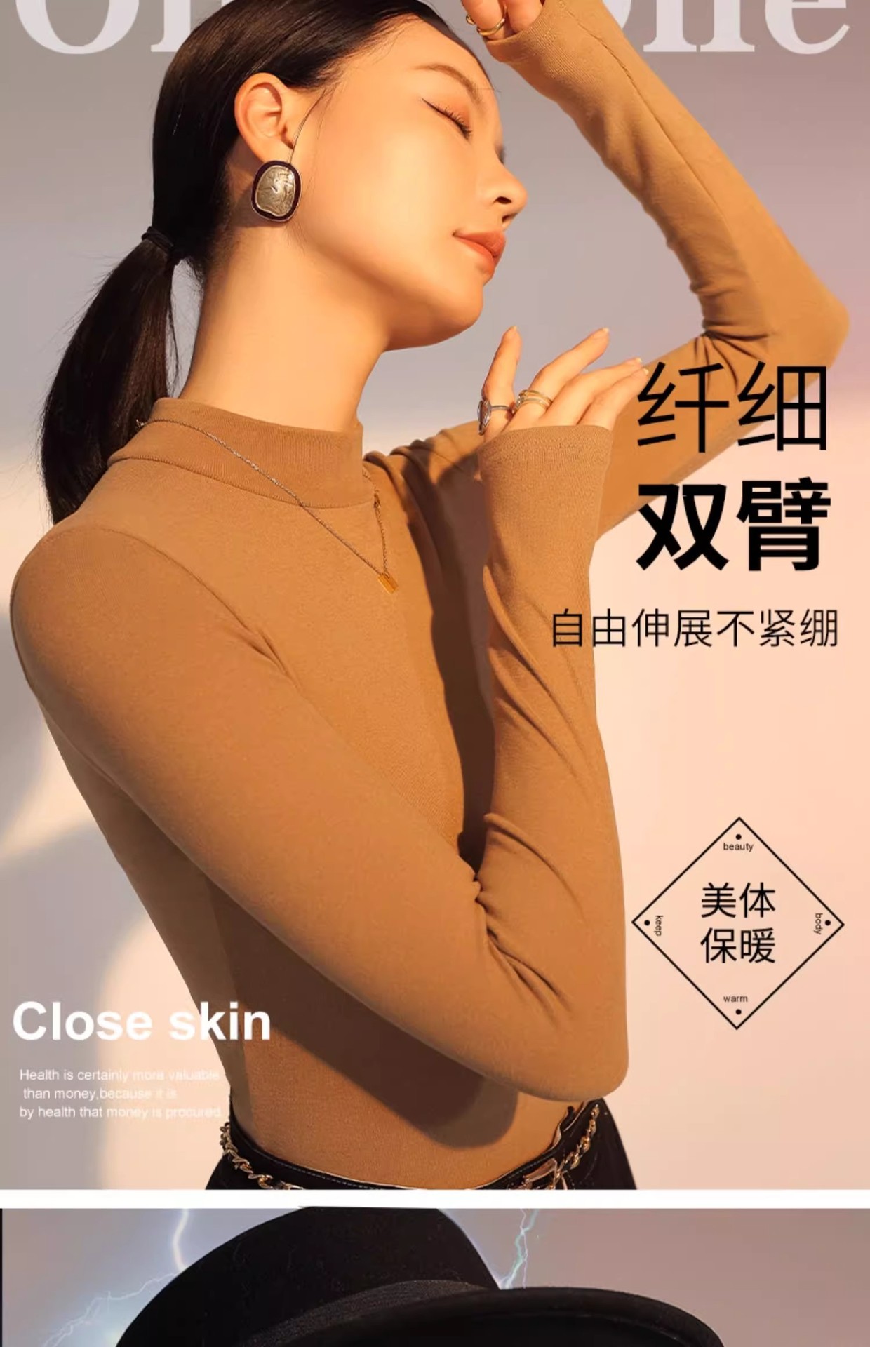 【直播爆款】精品羊绒蚕丝打底衫加绒加厚一体绒半高领保暖打底衫