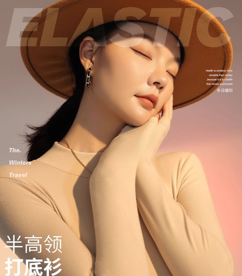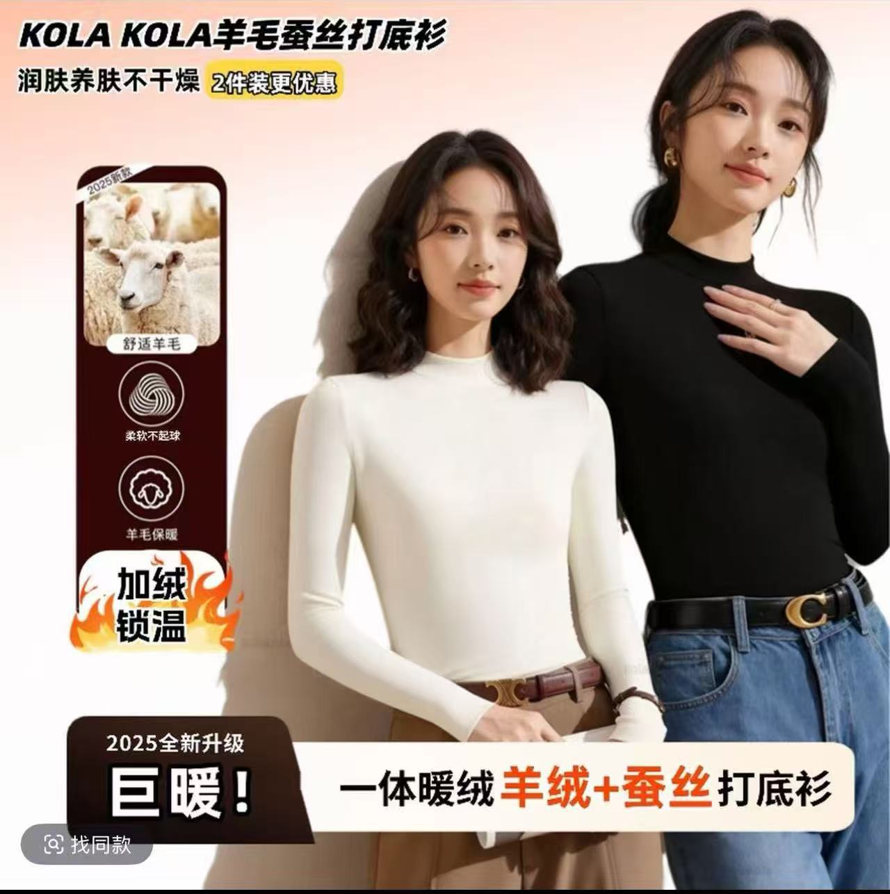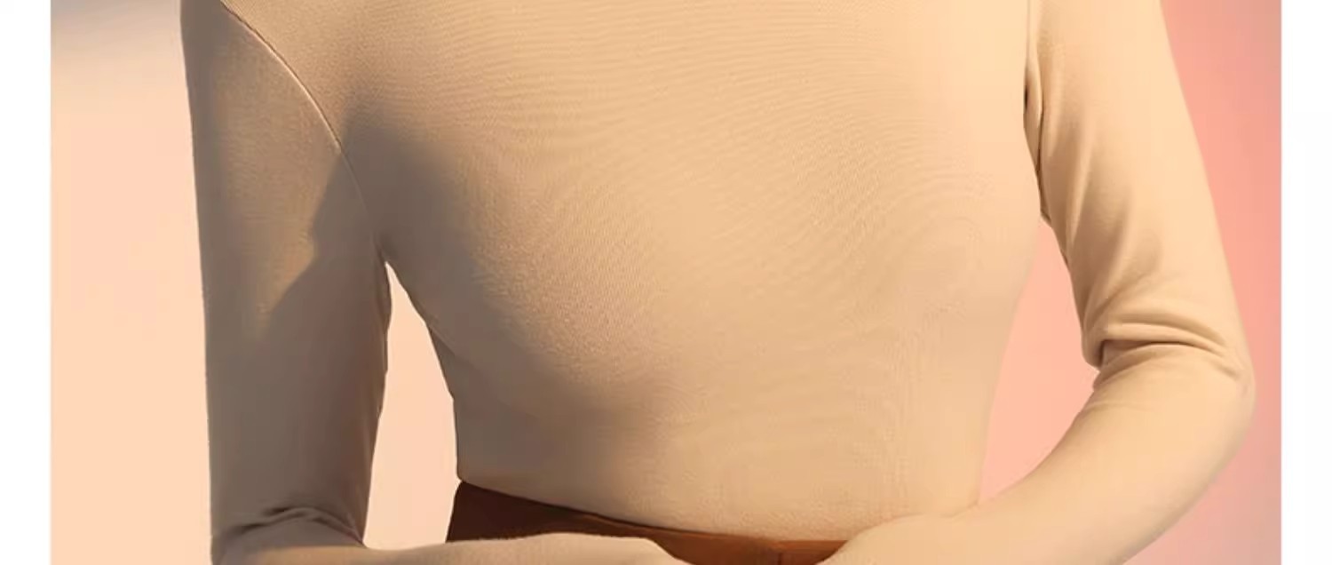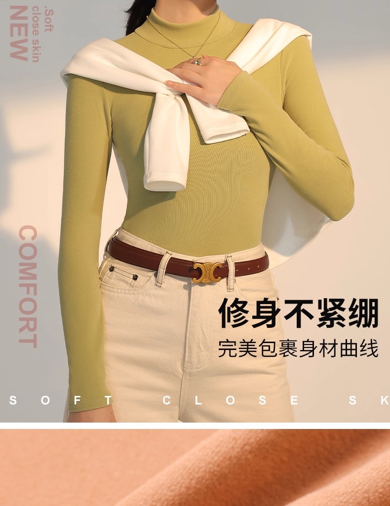 【直播爆款】精品羊绒蚕丝打底衫加绒加厚一体绒半高领保暖打底衫