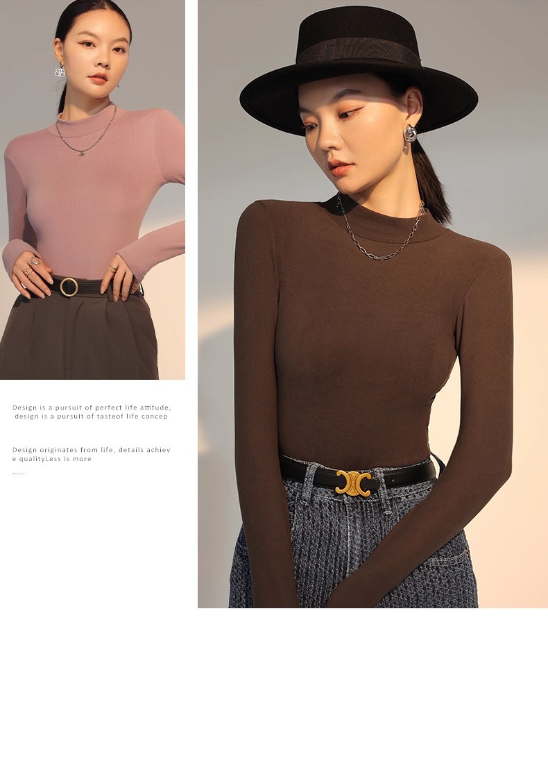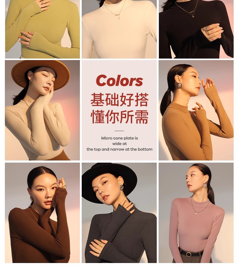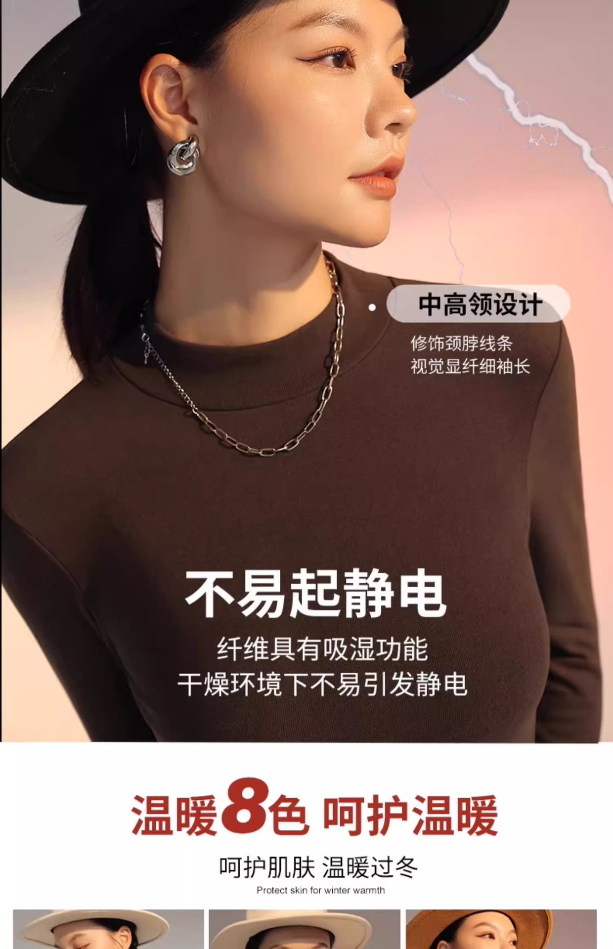 精品莫代尔半高领小立领修身常规款保暖女长袖打底无痕秋冬内穿