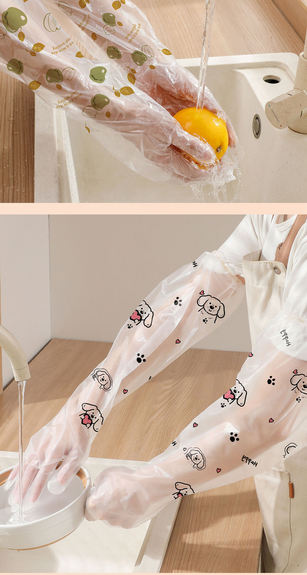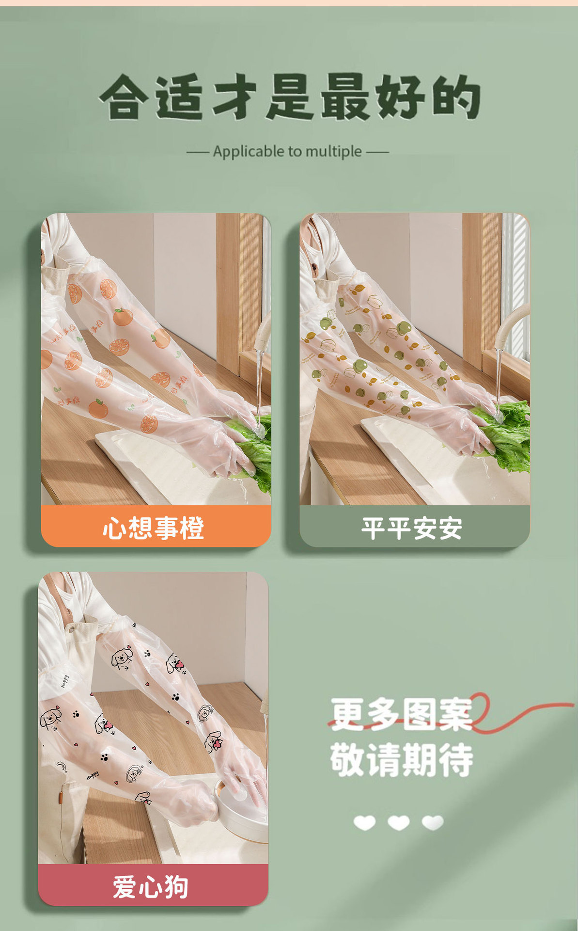 一次性印花长臂手套厨房洗碗家用护臂手套松紧束口加厚长臂手套