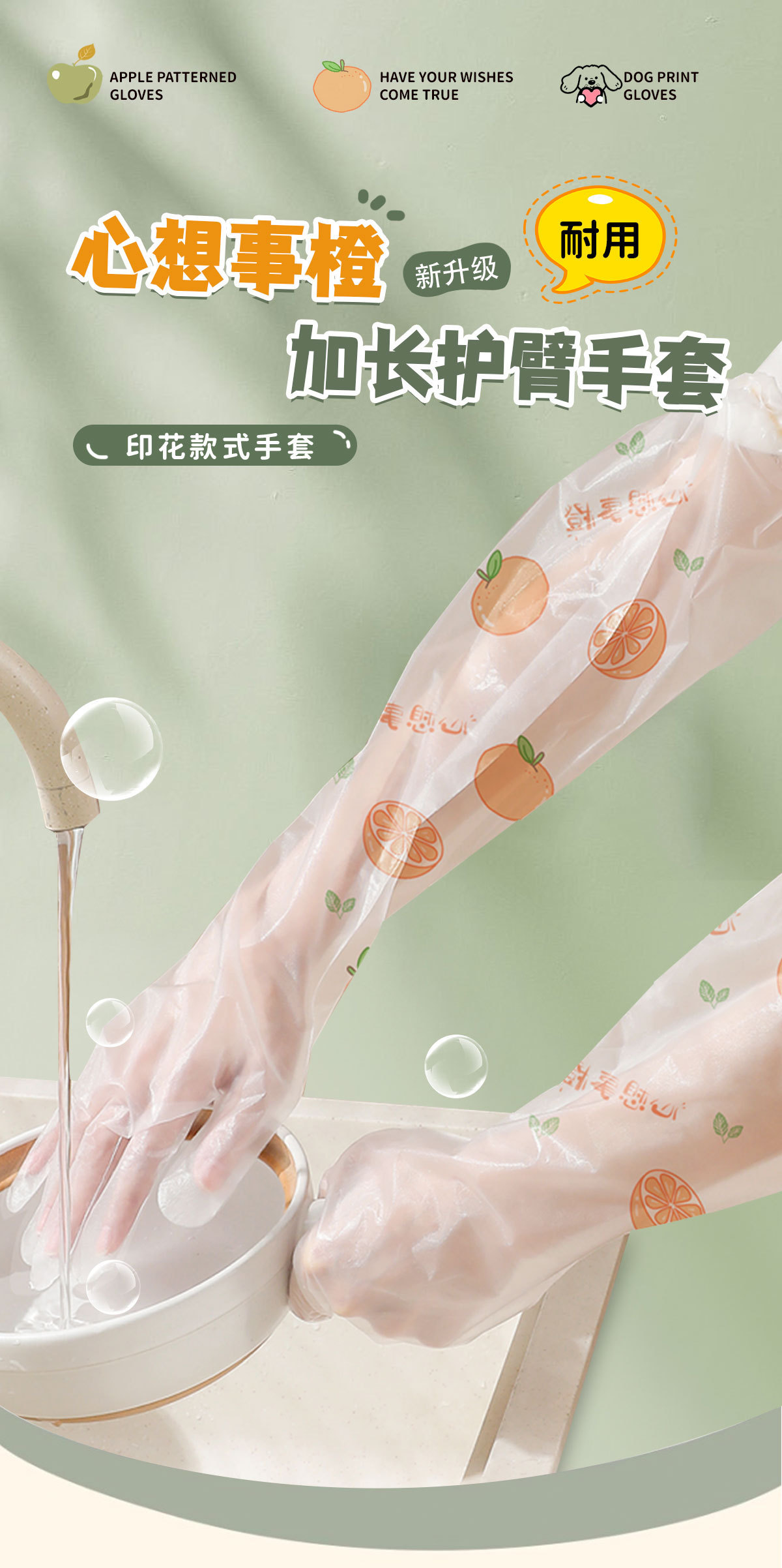 颜色 pe普通不带压纹护臂手套,苹苹安安印花护臂手套,心想事橙印花护臂手套,加厚透明护臂手套,爱心狗印花护臂手套